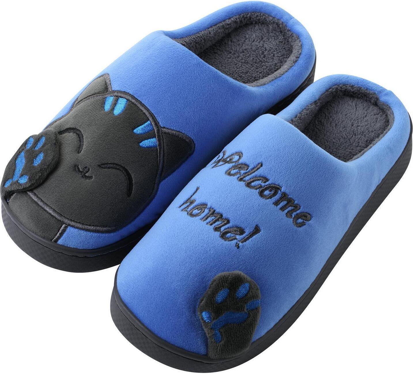Katara Tier Pantoffeln Gr. 34-41 (Einhorn, Katze, Hase) Plüsch Hausschuhe Hausschuhe, weich, warm, süß, kuschelig, Plüsch Katze (Schwarz-Blau) (blau/schwarz)
