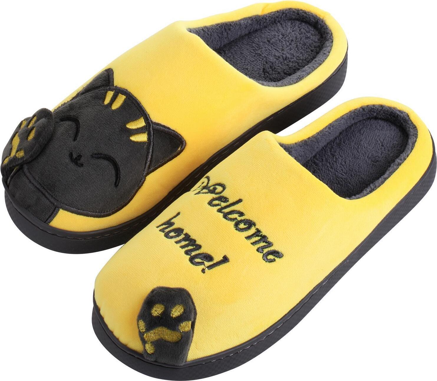 Katara Tier Pantoffeln Gr. 34-41 (Einhorn, Katze, Hase) Plüsch Hausschuhe Hausschuhe, weich, warm, süß, kuschelig, Plüsch Katze (Schwarz-Gelb) (gelb/schwarz)