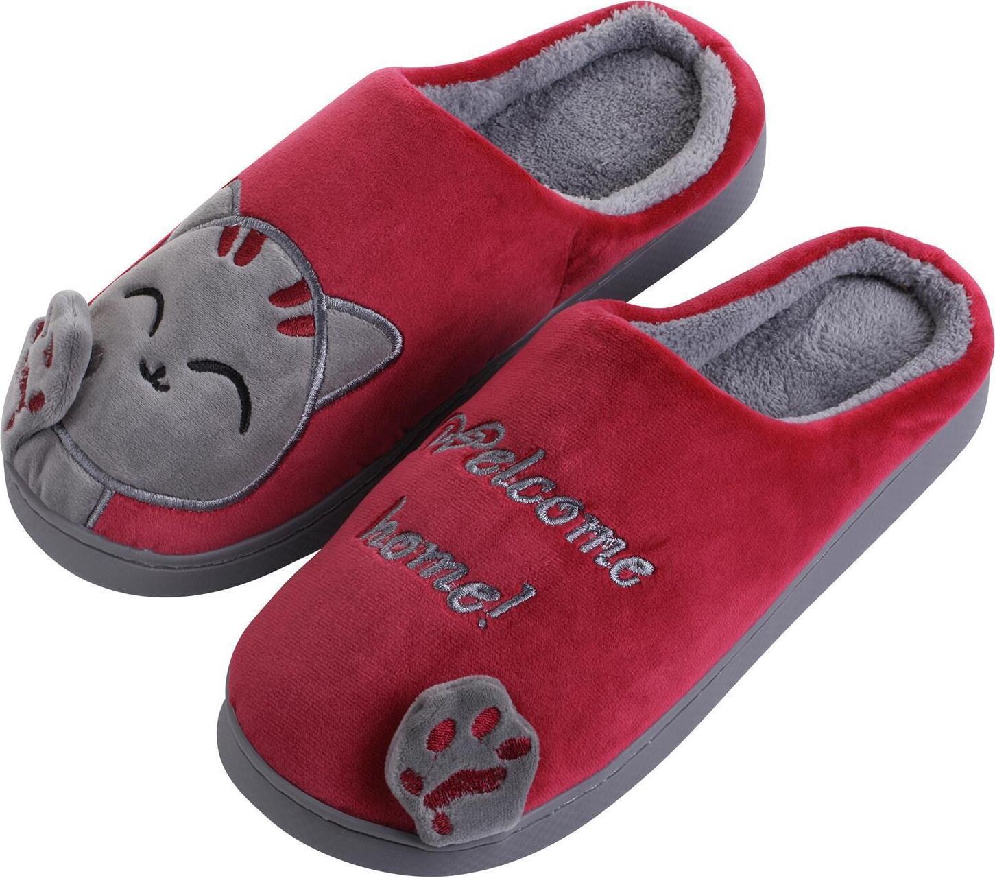 Katara Tier Pantoffeln Gr. 34-41 (Einhorn, Katze, Hase) Plüsch Hausschuhe Hausschuhe, weich, warm, süß, kuschelig, Plüsch Katze (Schwarz-Rot) (grau)