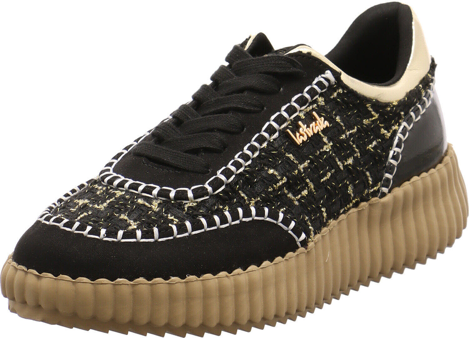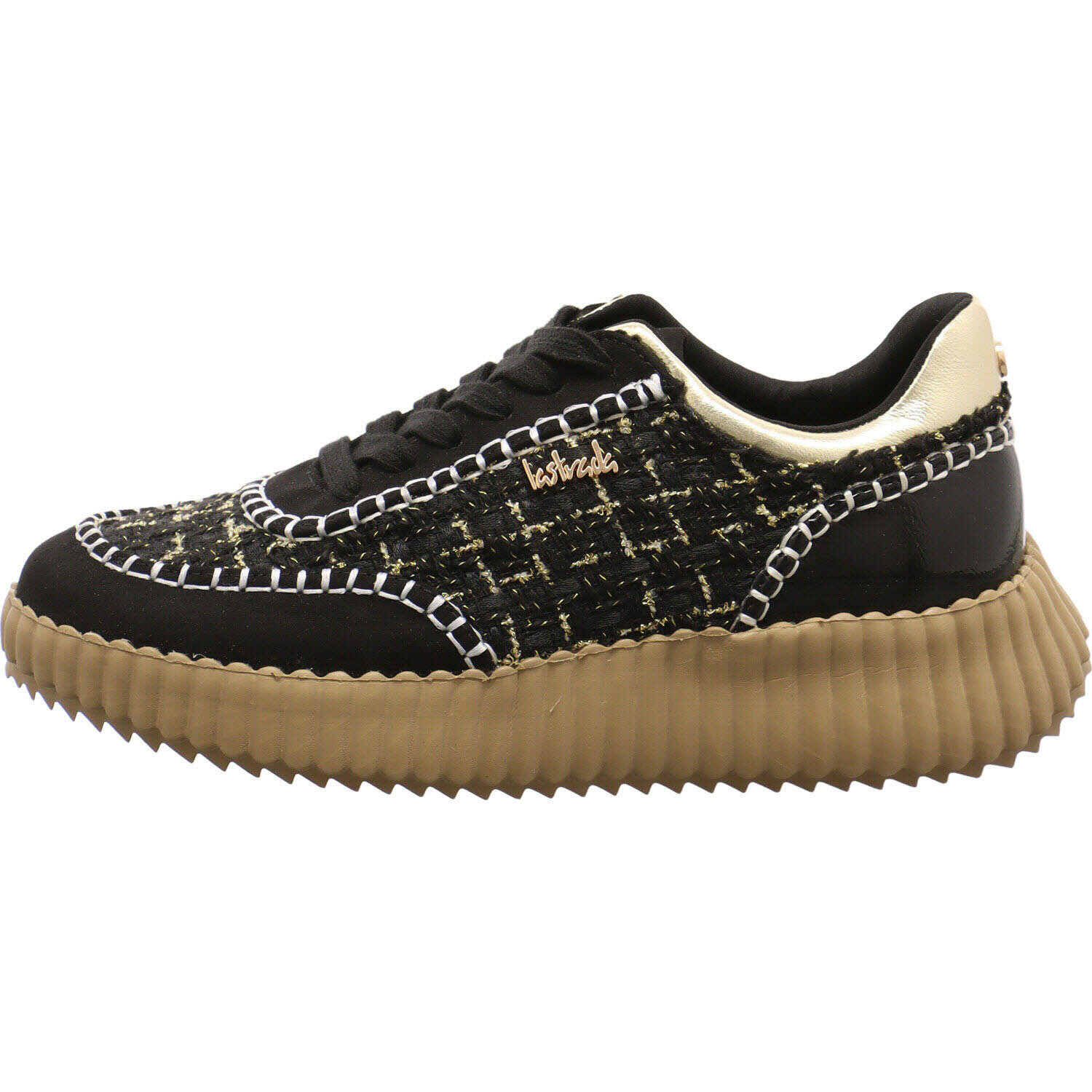 Dieser trendige Damen Sneaker vom Trendlabel La Strada darf auf keinen Fall in deinem Schuhschrank fehlen.Das Obermaterial aus Textil und Synthetik in Schwarz überzeugt mit einer angesagten Haptik und mit Highlights in Gold. +