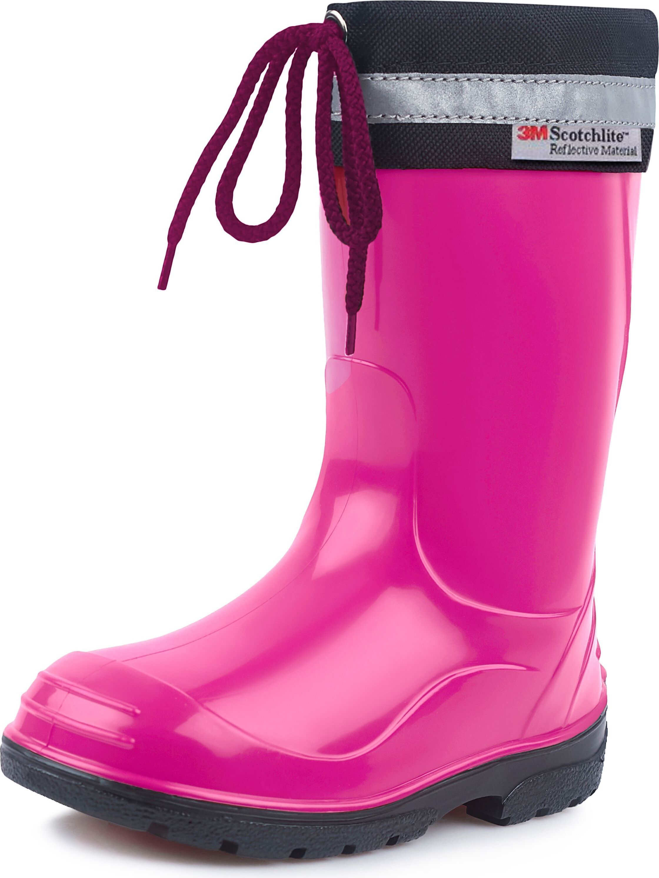 Ladeheid lange Regenschuhe für Mädchen und Jungen LA-972 Gummistiefel Kinder mit Stulpe zum Schnüren (rosa/schwarz)
