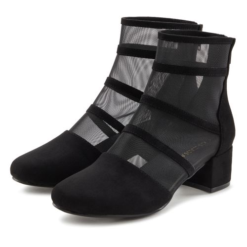 Lascana Ankle Boots, Stiefel Stiefelette mit modischen Mesh-Einsätzen und Blockabsatz VEGAN (schwarz)