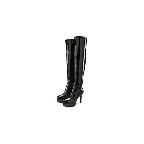 In modischer Lackoptik, mit Plateausohle und durchgehendem Reißverschluss ist dein verführerischer Look vorprogrammiert. Setze die sexy Stiefel perfekt in Szene, indem du dein Outfit schlicht und dezent hälts.