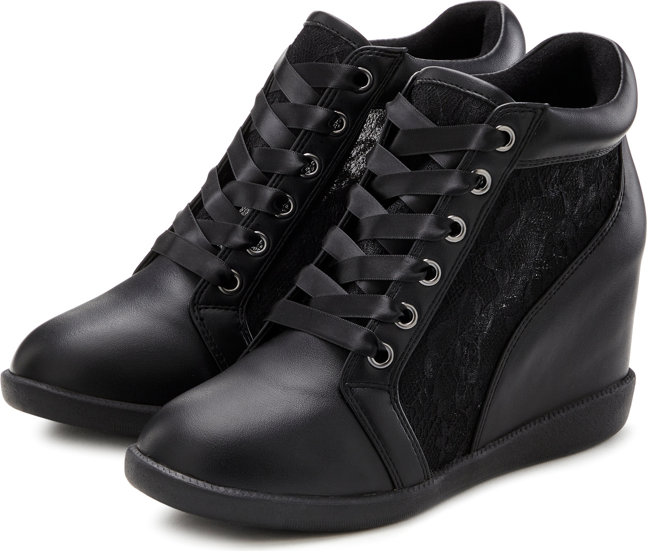 Lascana Freizeitschuh, Halbschuh, Keilstiefelette, Sneaker Stiefelette mit innenliegendem Keilabsatz und Spitzendetails (schwarz)