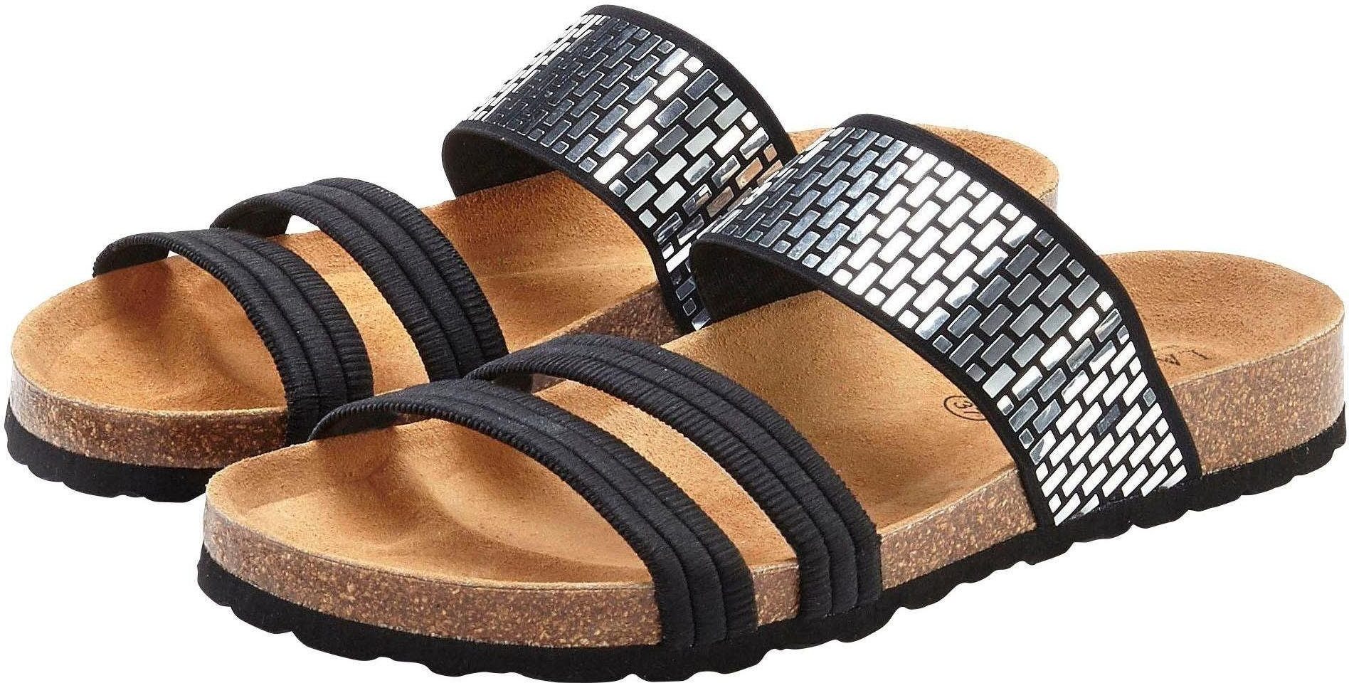 Die Pantolette von LASCANA garantiert durch ihr Korkfußbett und ihr weiches Material ein herrlich komfortables Tragegefühl. Die Riemchen geben dem Fuß Halt und werden durch den glänzenden Besatz gleich zum modischen Hingucker.