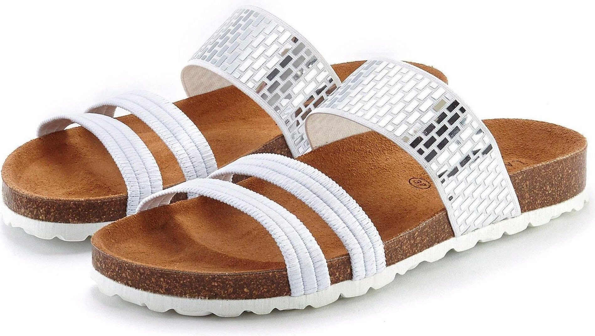 Lascana Mule, Sandale, offener Schuh, Pantolette mit Komfortkorkfußbett aus Leder und elastischen Riemchen (weiß)