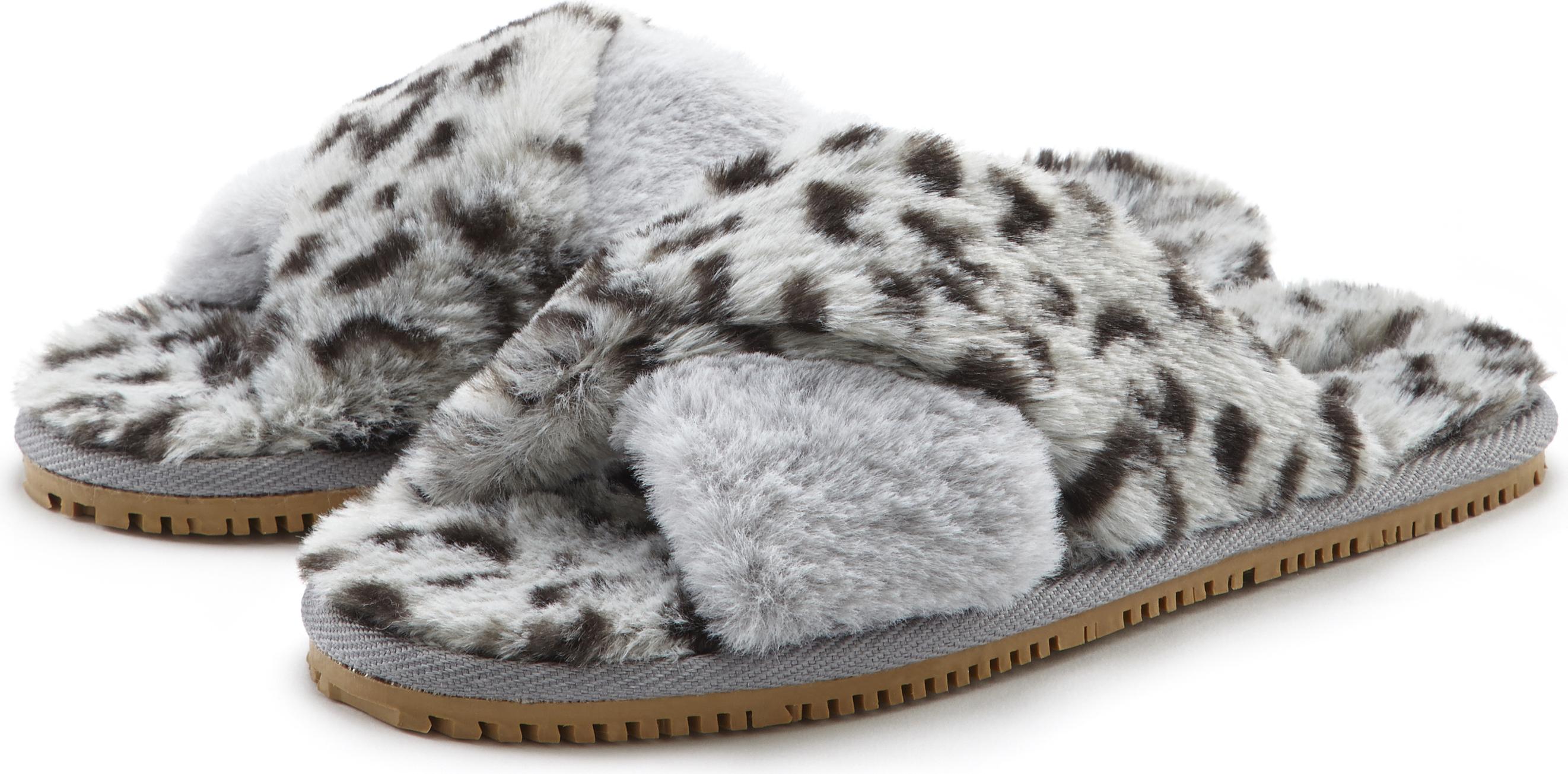 Lascana Mule, Sandale, offener Schuh, Pantolette, Pantoffel, Hausschuh mit Leo Print VEGAN (grau)