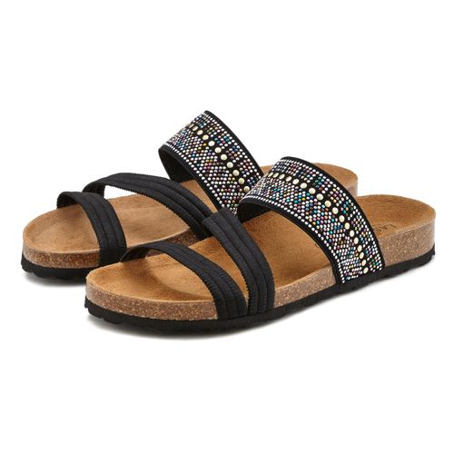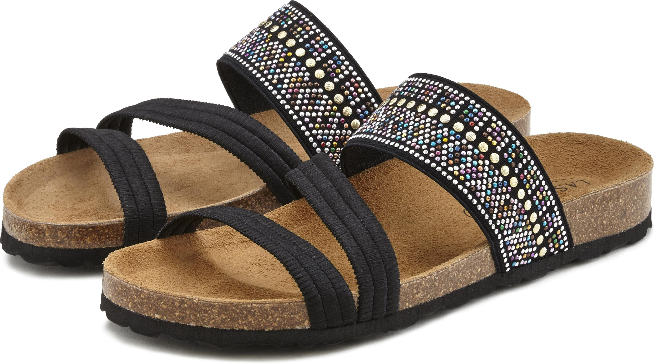 Lascana Mule, Sandale, offener Schuh, Sommerschuh, Pantolette mit Komfortkorkfußbett aus Leder und elastischen Riemen (schwarz)
