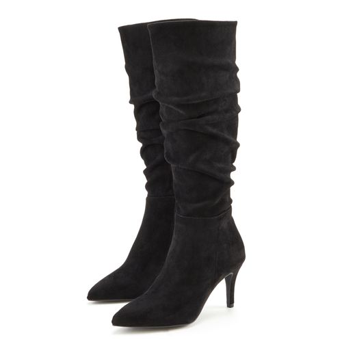 Lascana Reißverschlussstiefel mit modischer Raffung, Langschaft, High-Heel Stiefelette,Slouchy Boots (schwarz)