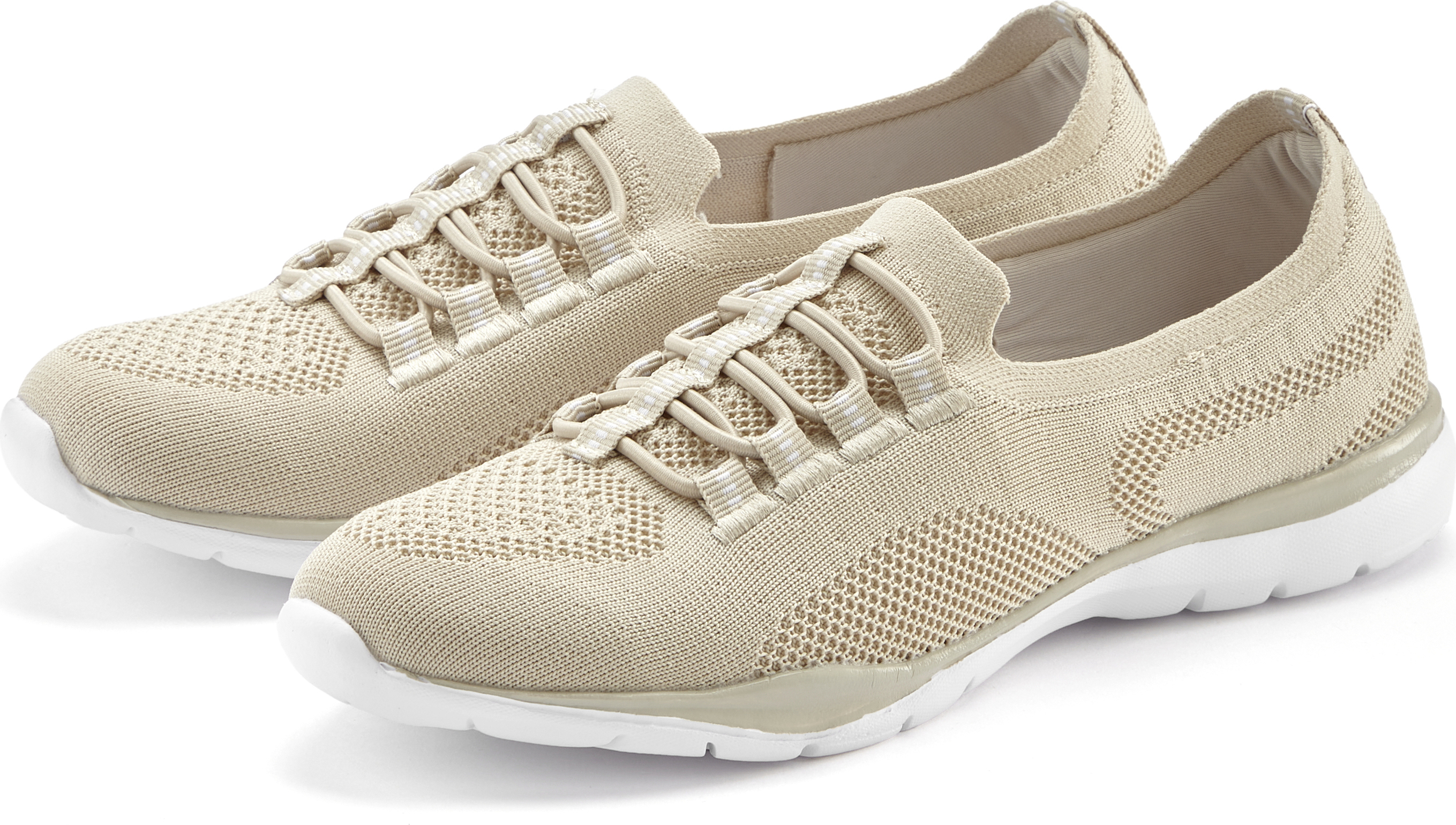 Lascana Slipper, Halbschuh, leichtes Meshmaterial Sneaker zum Reinschlüpfen mit elastischen Schnürbändern VEGAN (beige)