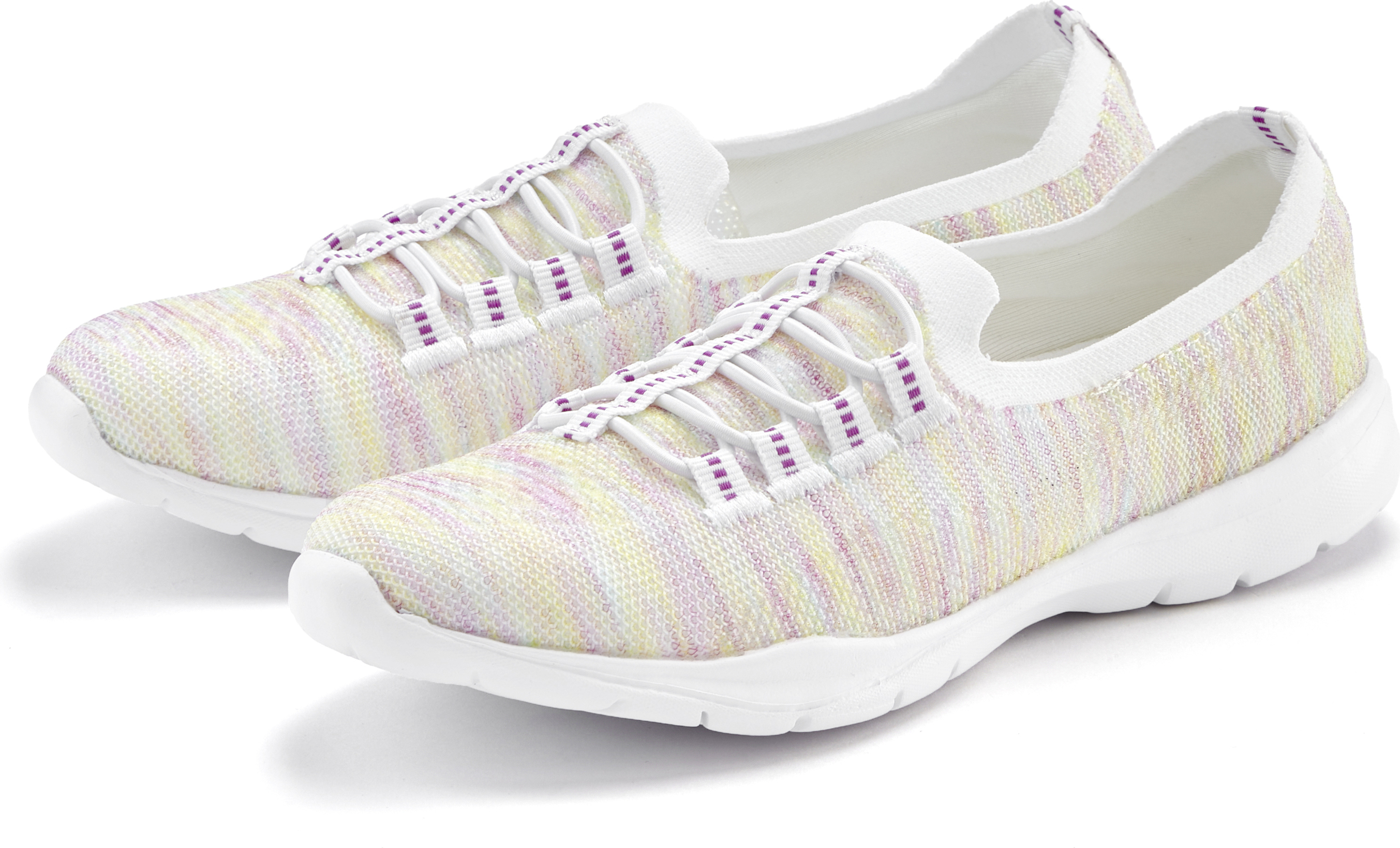 Lascana Slipper, Halbschuh, leichtes Meshmaterial Sneaker zum Reinschlüpfen mit elastischen Schnürbändern VEGAN (gelb/rosa)