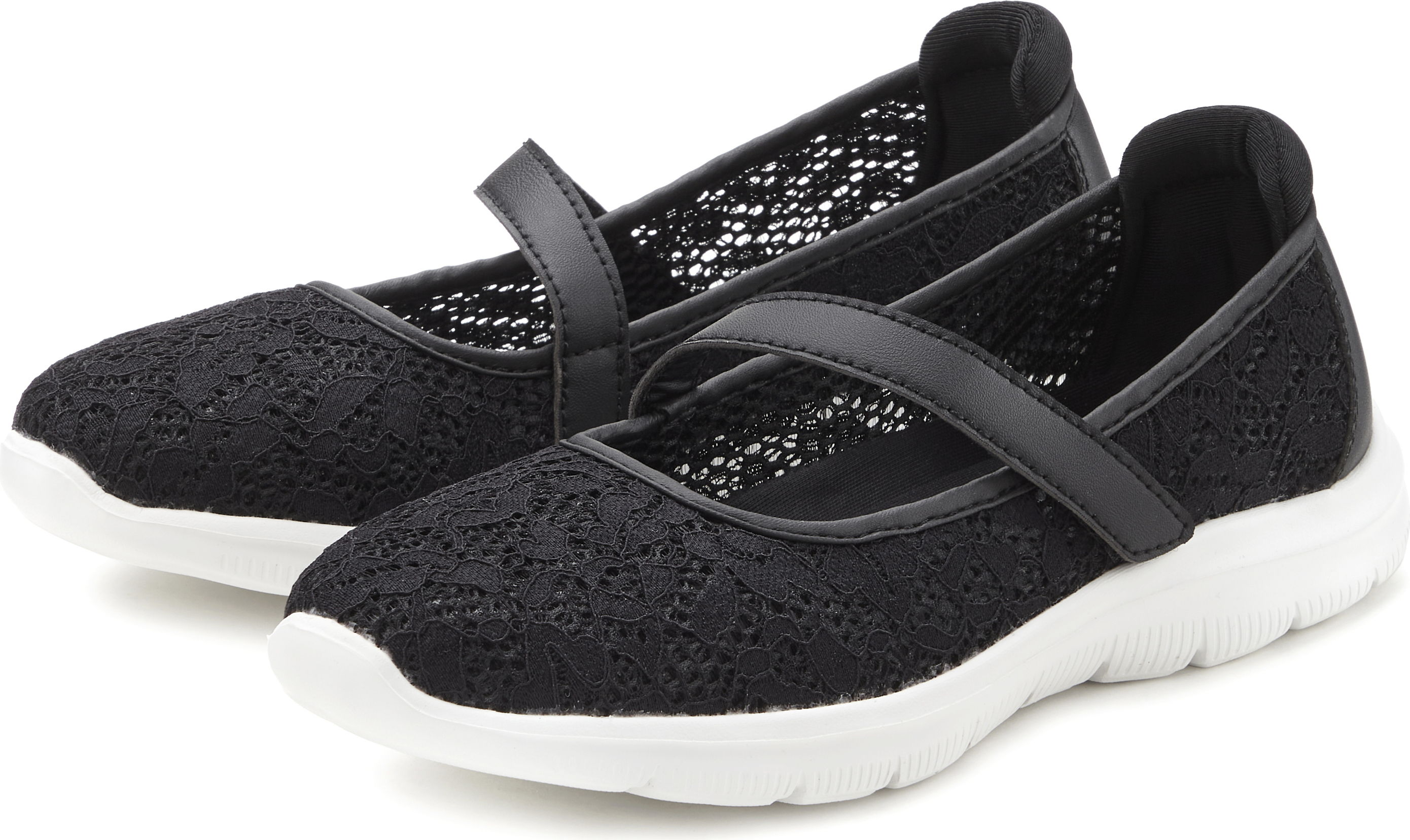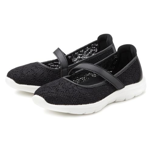Der hübsche Spitzeneinsatz verleiht dem Freizeitschuh das gewisse Etwas. Der Klettverschluss sorgt für eine individuelle und bequeme Passform, die gepolsterte Fersenkappe garantiert Stabilität und Komfort.