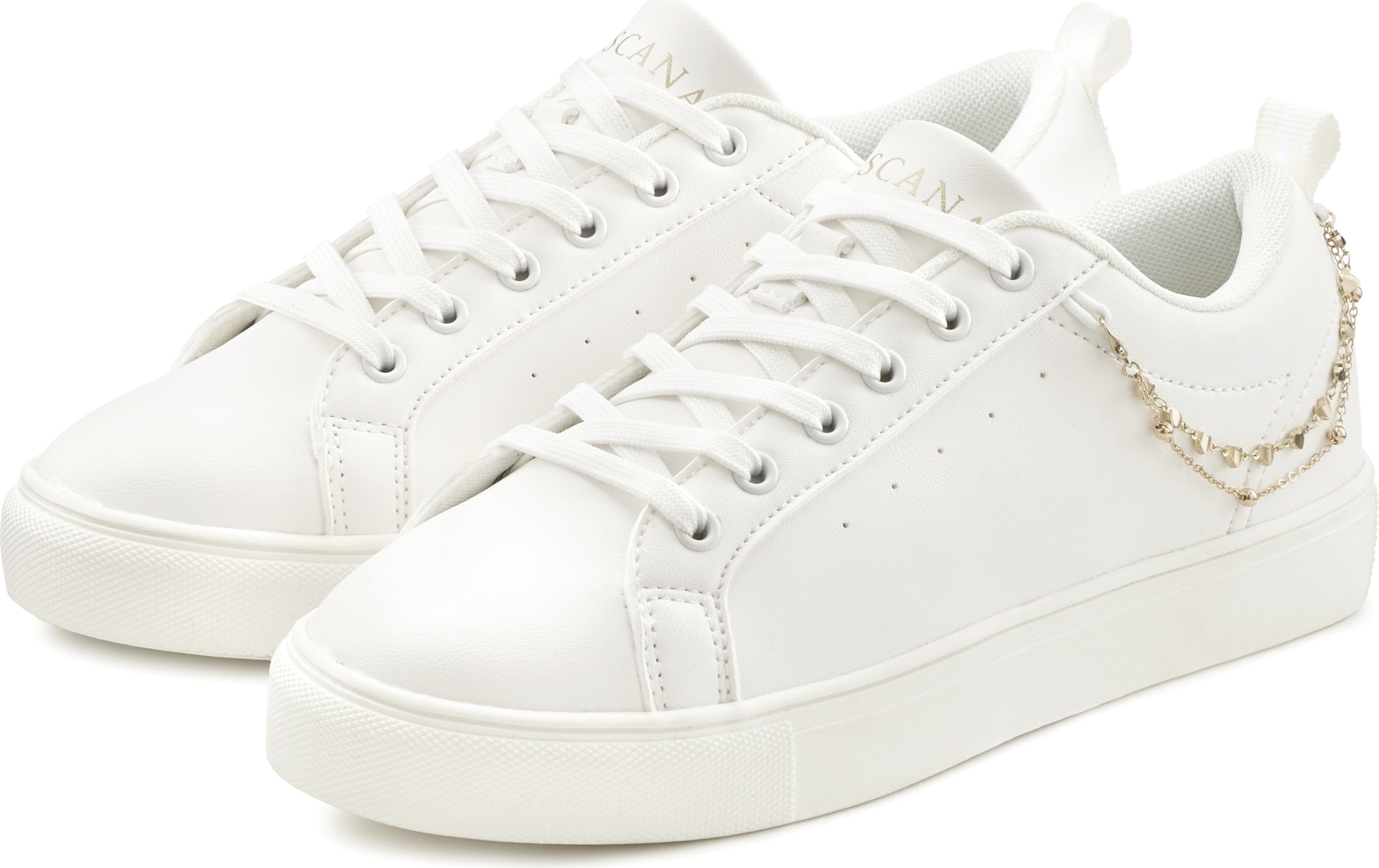 Lascana Sneaker modisches Ketten-Element, Schnürhalbschuhe, Freizeitschuhe VEGAN (weiß)