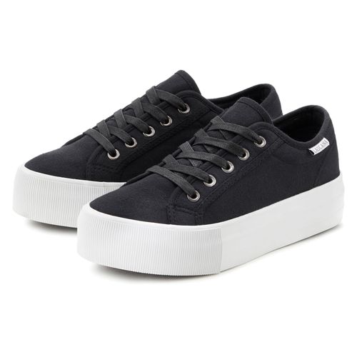 Mit der strukturierten Stoffoberfläche im unifarbenen Design, der vorn geriffelten Plateausohle und der Schnürung zeigt der Freizeitschuh einen klassischen und zeitlosen Look. Ob im Urlaub an der Strandpromenade oder in der Freizeit beim Shoppen: Der Plateauschuh passt einfach supergut zu Shorts, Jeans und luftigen Oberteilen.