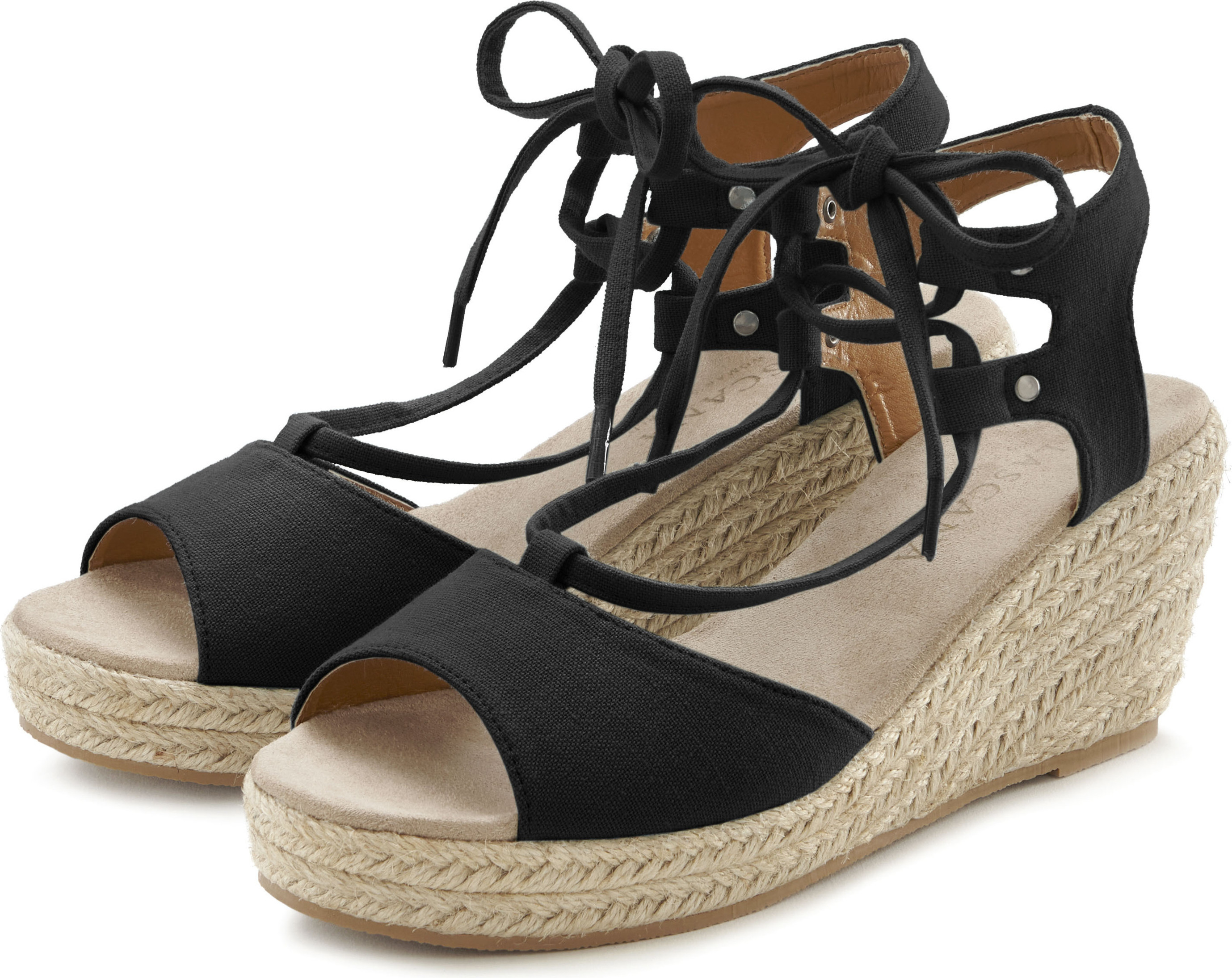 Lascana Sommerschuh Keilsandalette Sandalette, Sandale mit Keilabsatz, Bast-Optik & Schnürung VEGAN (schwarz)