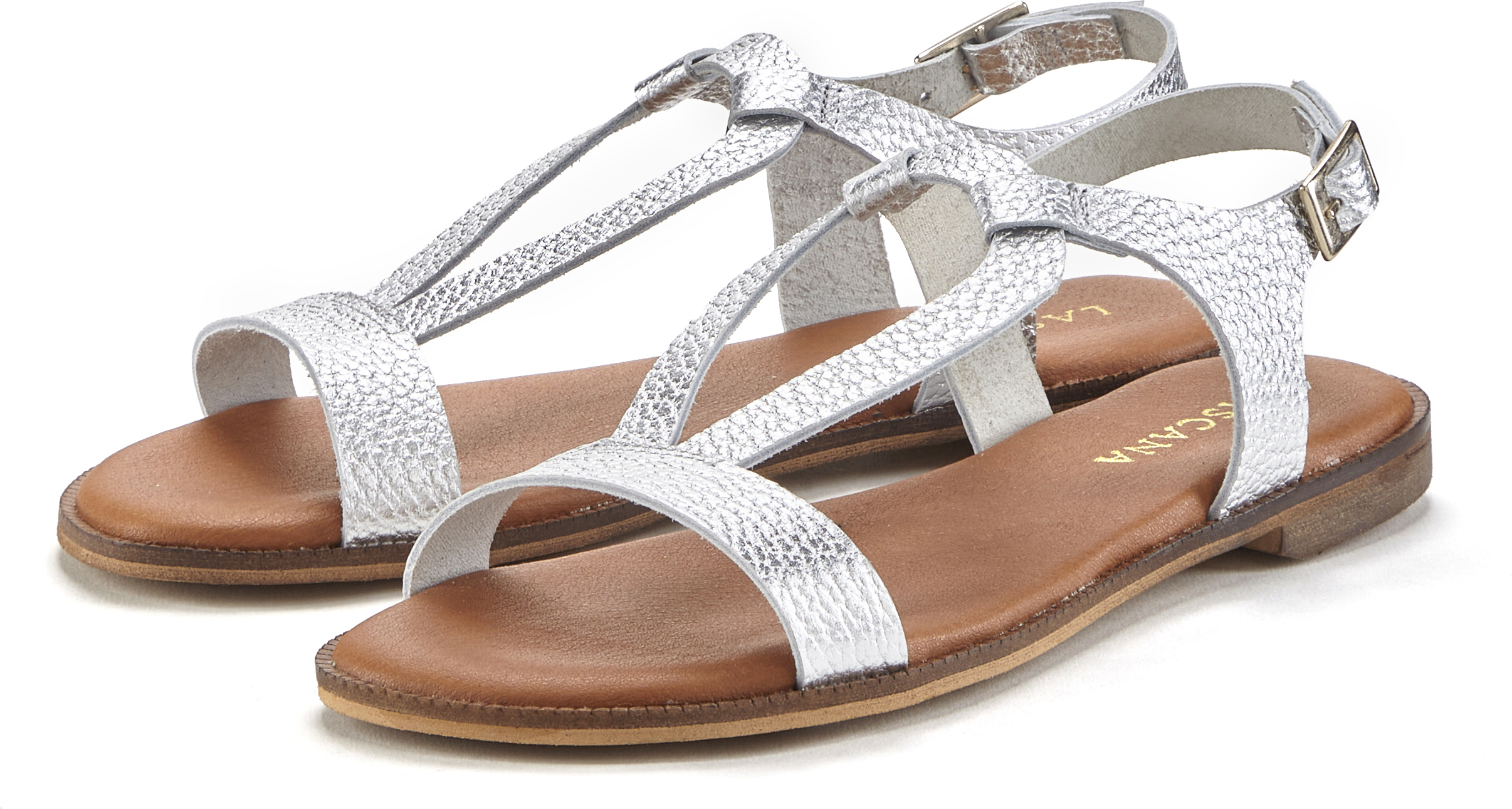 Entdecke den perfekten Begleiter für deinen sommerlichen Style: Die LASCANA Sandale in elegantem Silber. Diese stylische Sandalette vereint hochwertige Verarbeitung mit modernem Design und sorgt für ein unvergessliches Trageerlebnis. Das Obermaterial aus hochwertigem Rindsleder garantiert Langlebigkeit und eine edle Optik, während die extraweiche Innensohle für hohen Komfort sorgt – so kannst du jeden Schritt genussvoll genießen. +