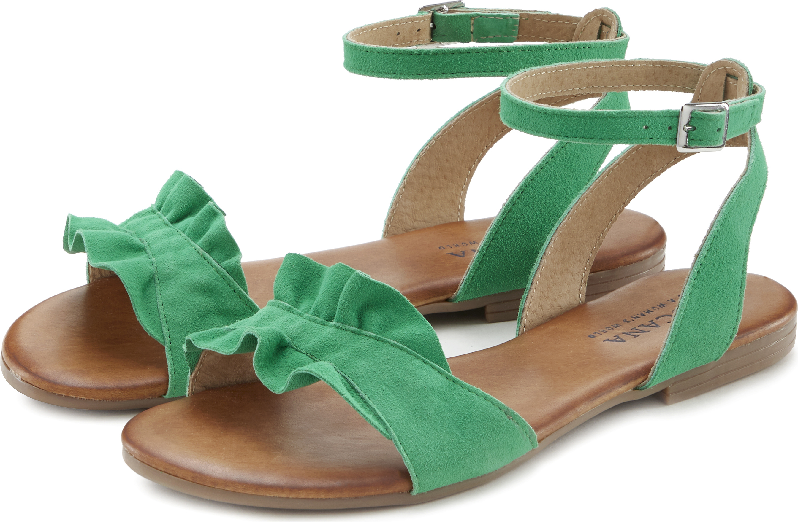 Lascana Sommerschuh Sandale Sandalette, Sommerschuh aus hochwertigem Leder mit kleinen Rüschen (grün)