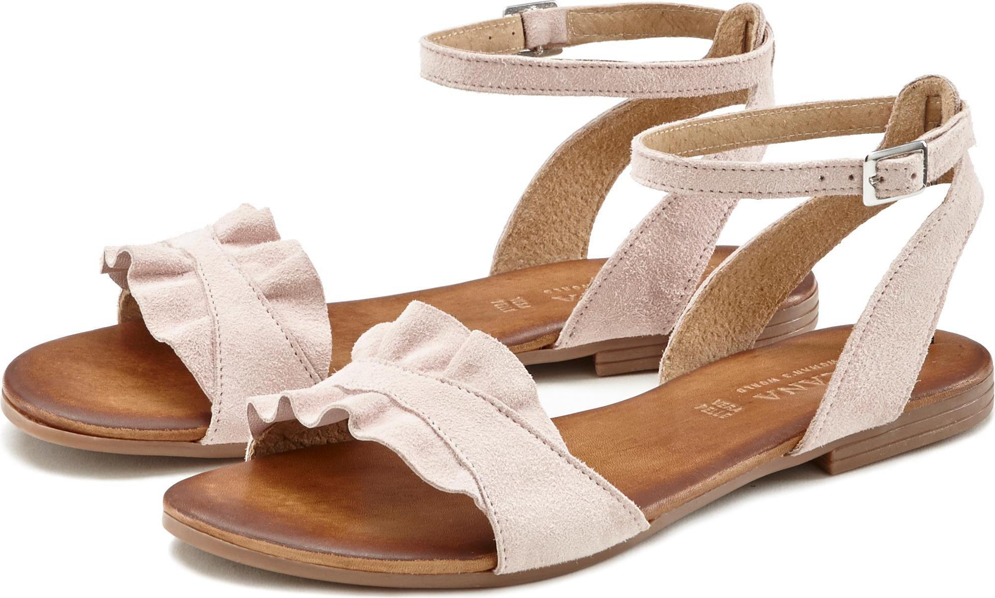 Lascana Sommerschuh Sandale Sandalette, Sommerschuh aus hochwertigem Leder mit kleinen Rüschen (rosé)