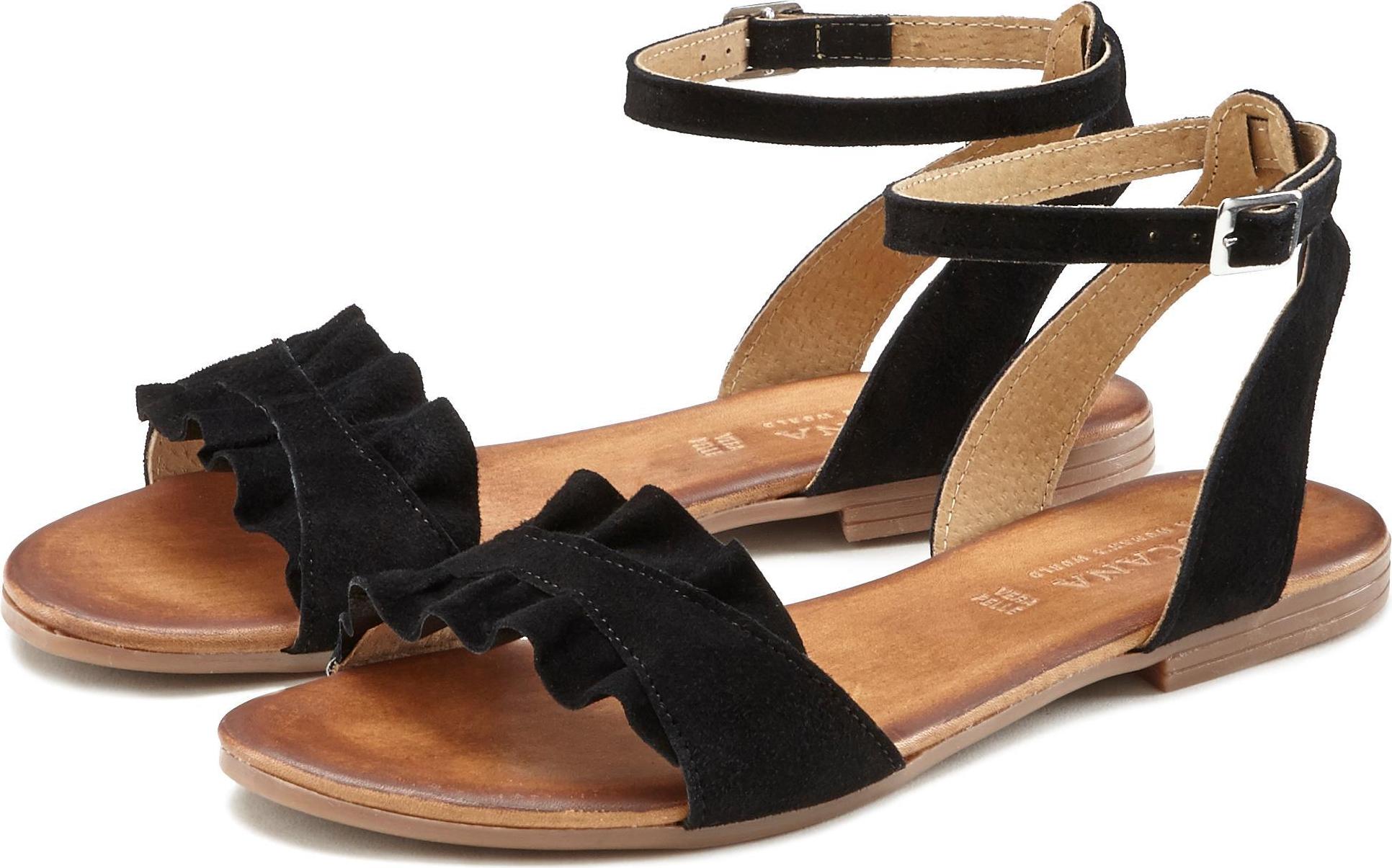 Lascana Sommerschuh Sandale Sandalette, Sommerschuh aus hochwertigem Leder mit kleinen Rüschen (schwarz)