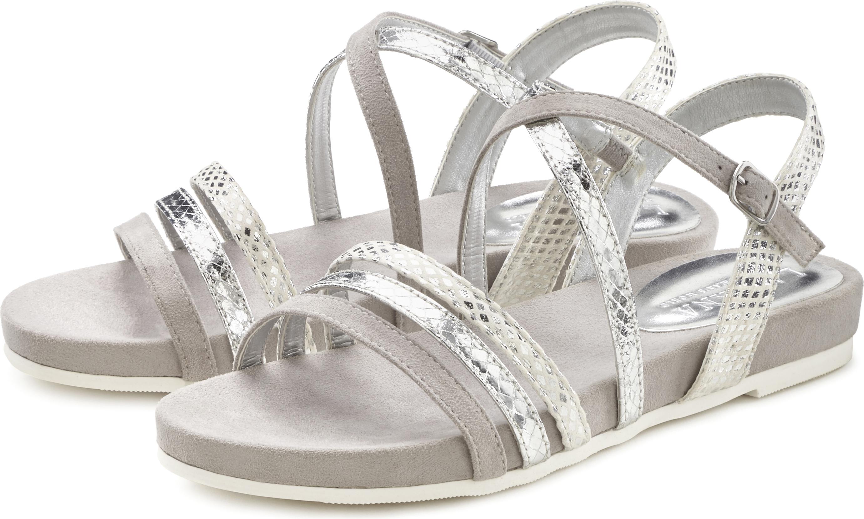 Zum Hingucken: Die Sandale von Lascana überzeugt mit ihrem raffinierten Design, das durch elegante Riemchen mit Metallic-Details hervorgehoben wird. +