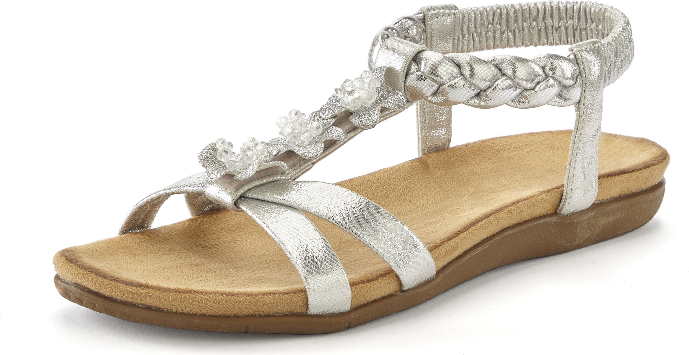 Lascana Sommerschuh Sandale Sandalette, Sommerschuh mit Schmucksteinchen und elastischem Riemchen (silber)