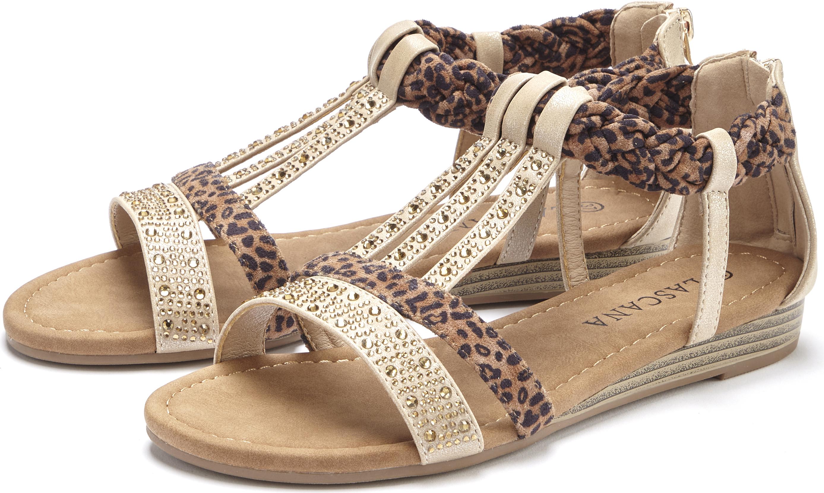 Entdecken Sie die strahlende Eleganz der LASCANA Sandale Sandalette in einem trendigen beige-braun, die Ihren Sommerstil perfekt ergänzt. Diese sandalenartige Sommerschuh ist nicht nur ein modisches Accessoire, sondern ein echter Hingucker, dank ihrer aufwendigen Verzierung und der glitzernden Strasssteinchen, die jeden Ihrer Schritte zum Funkeln bringen. +