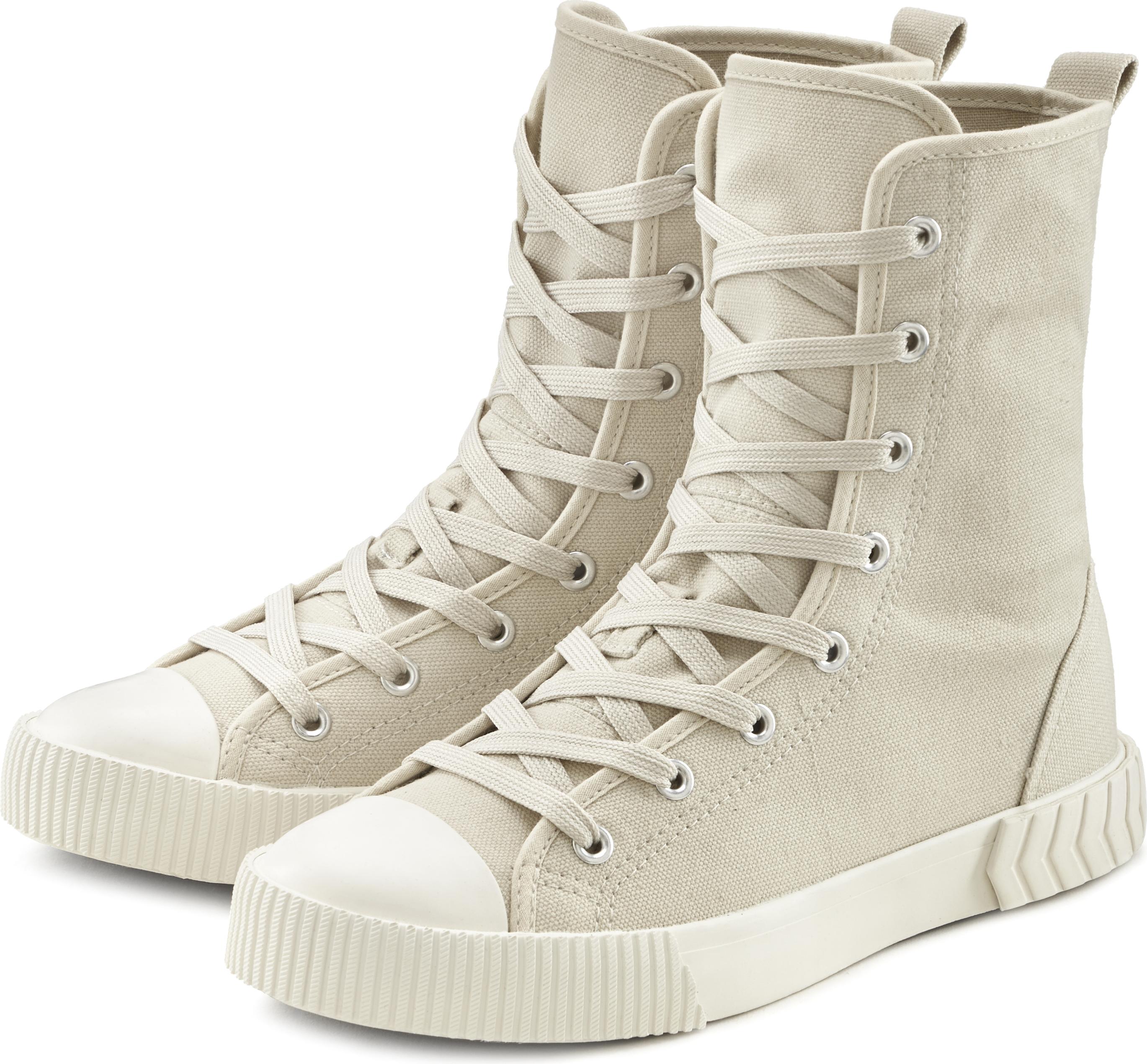 Lascana Stiefelette im Combat Look, High Top Sneaker, Schnürschuh, Textil-Boots (beige)