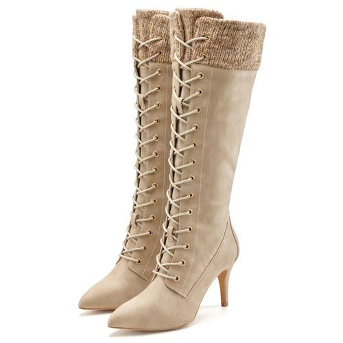 Lascana Stiefelette, Langer Stiefel Stiefel mit spitz zulaufender Form und Strickeinsatz (beige)