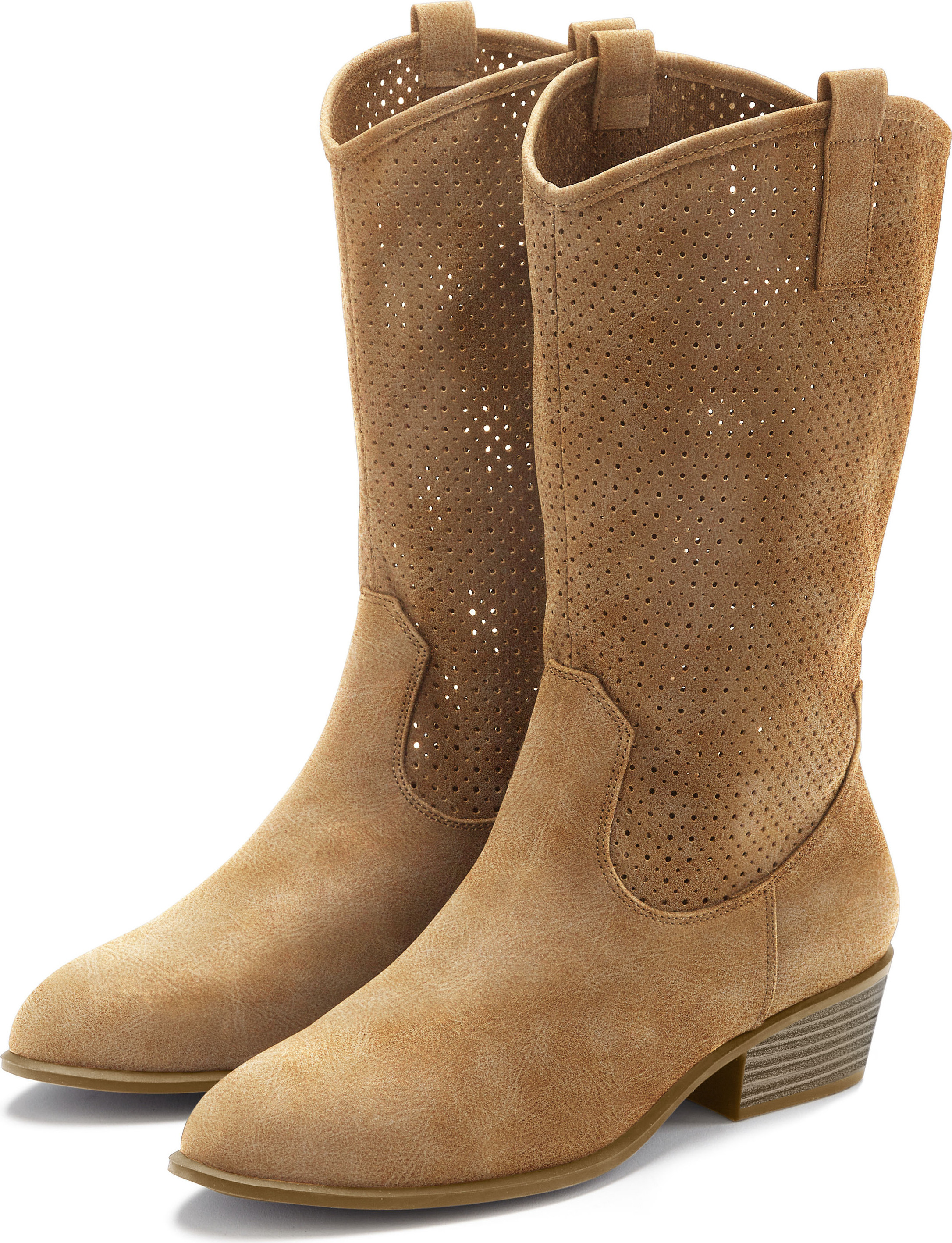 Lascana Westernstiefel Sommer Boots, Ankle Stiefelette, Schlupfstiefel, Cowboy-Look, Cut-Outs (braun)
