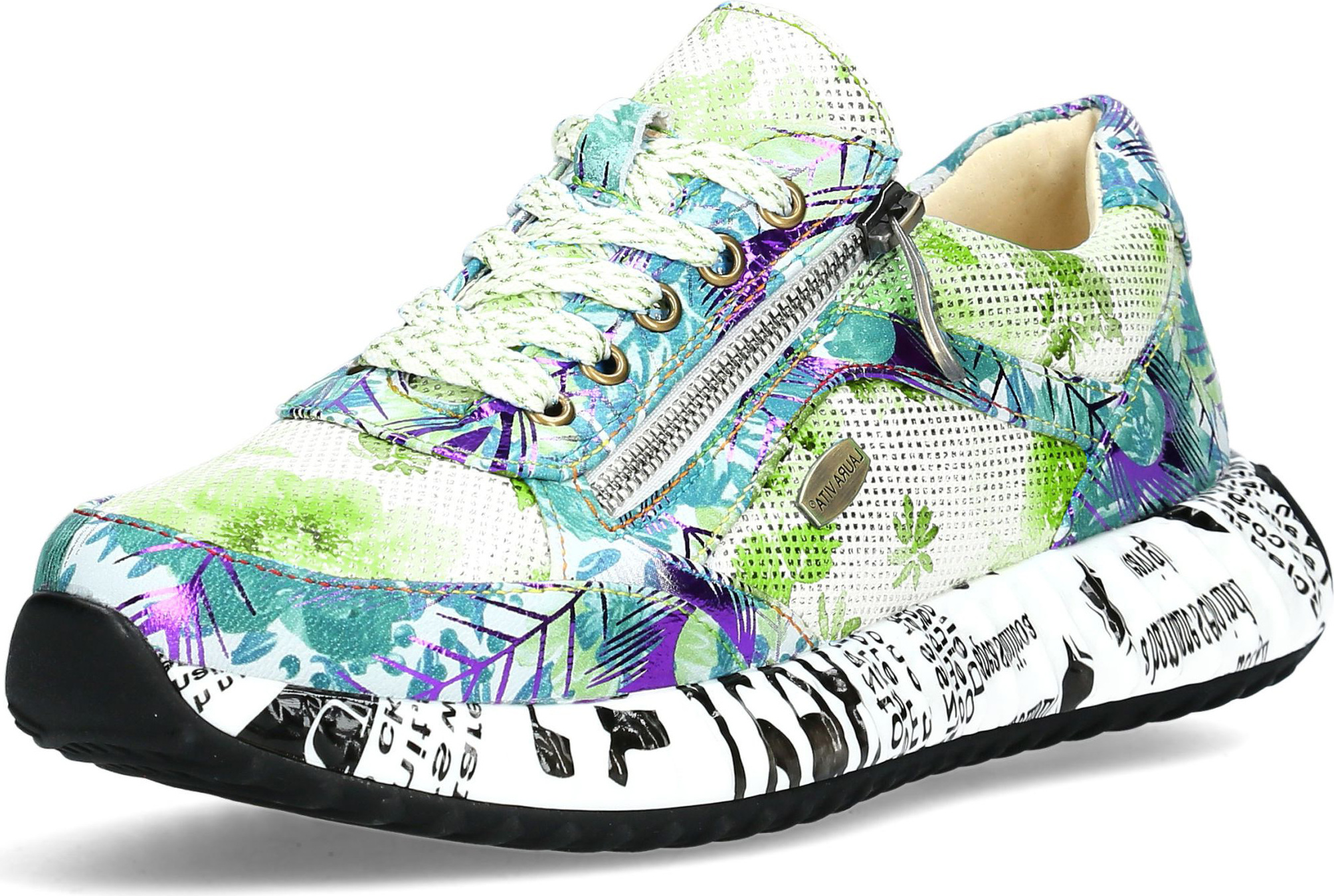 Ein richtiger Gute-Laune-Schuh ist der sportliche Schnürer Burton 1123 von Laura Vita! Der Materialmix aus Leder und Textil zeigt sich in bunter Optik. +