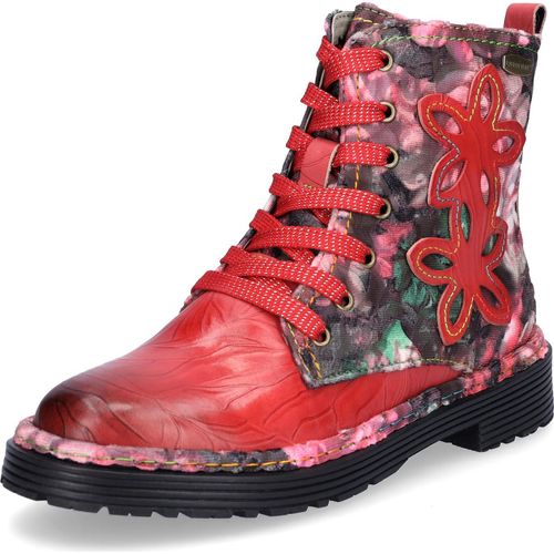Laura Vita Damen Schnürboot aus Leder und Textil in Rot Multi mit Reißverschluss, Schnürung, Memo-Wechselfußbett und gummierter Sohle