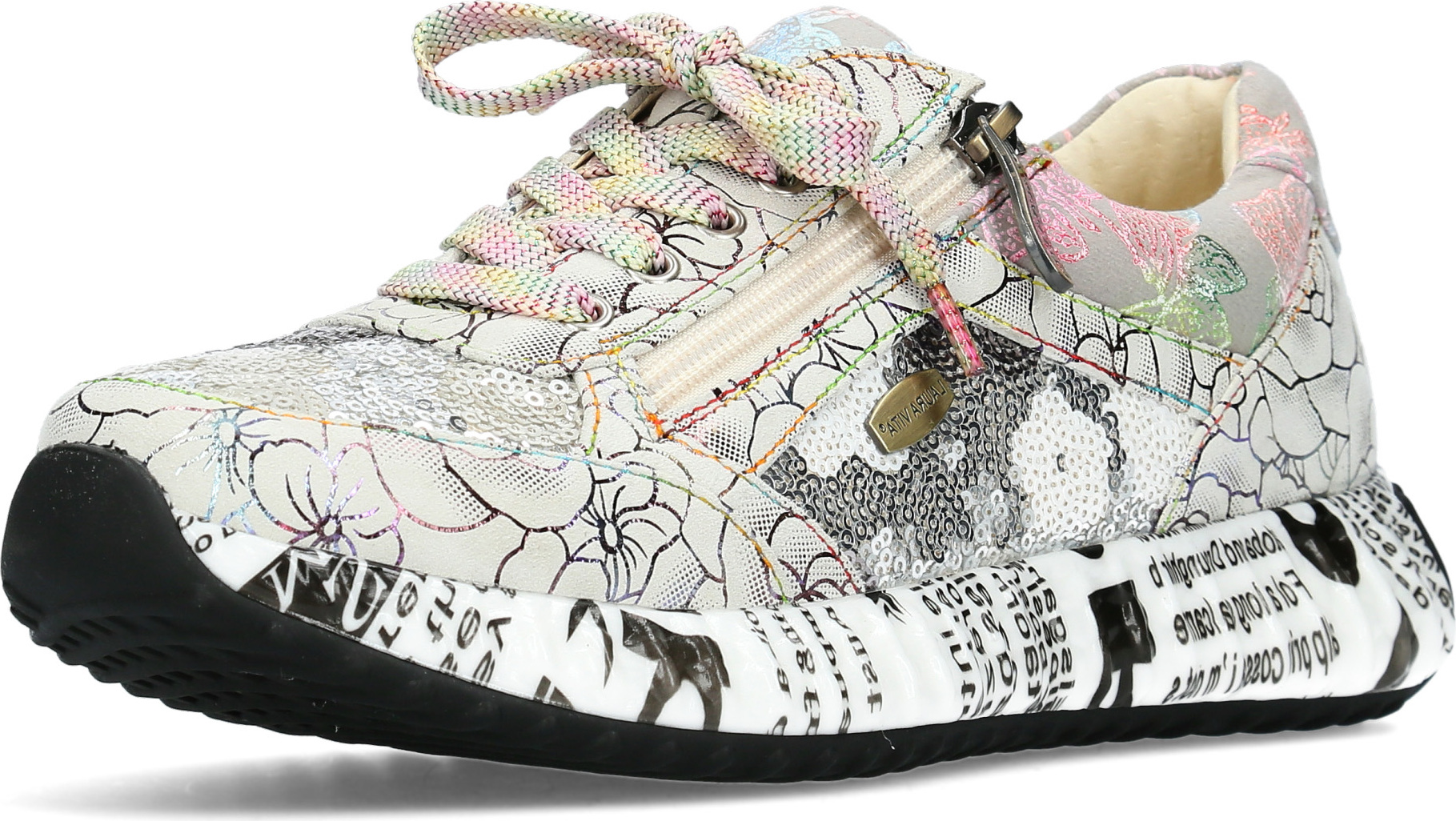 Laura Vita Damen Sneaker aus Leder und Textil in Perlmutt mit Pailletten, Schnürung und Reißverschluss, sowie Wechselfußbett und Gummisohle