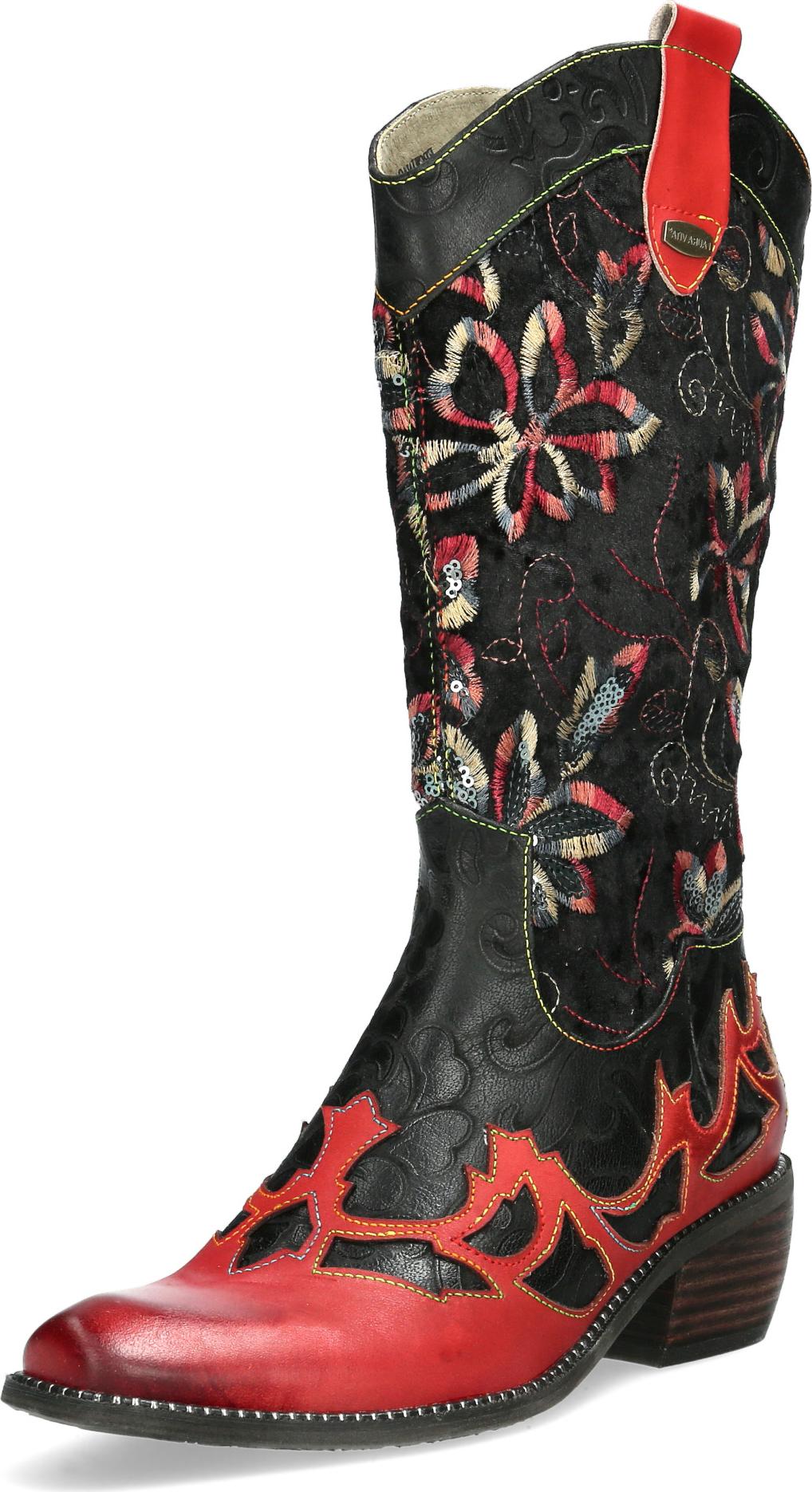 Das markante Design kombiniert klassische Western-Elemente mit dem typisch kreativen Laura-Vita-Stil. Dank der bequemen Passform und der sorgfältigen Verarbeitung bietet der Stiefel nicht nur einen modischen Look, sondern auch hohen Tragekomfort – ideal für alle, die das Besondere lieben.