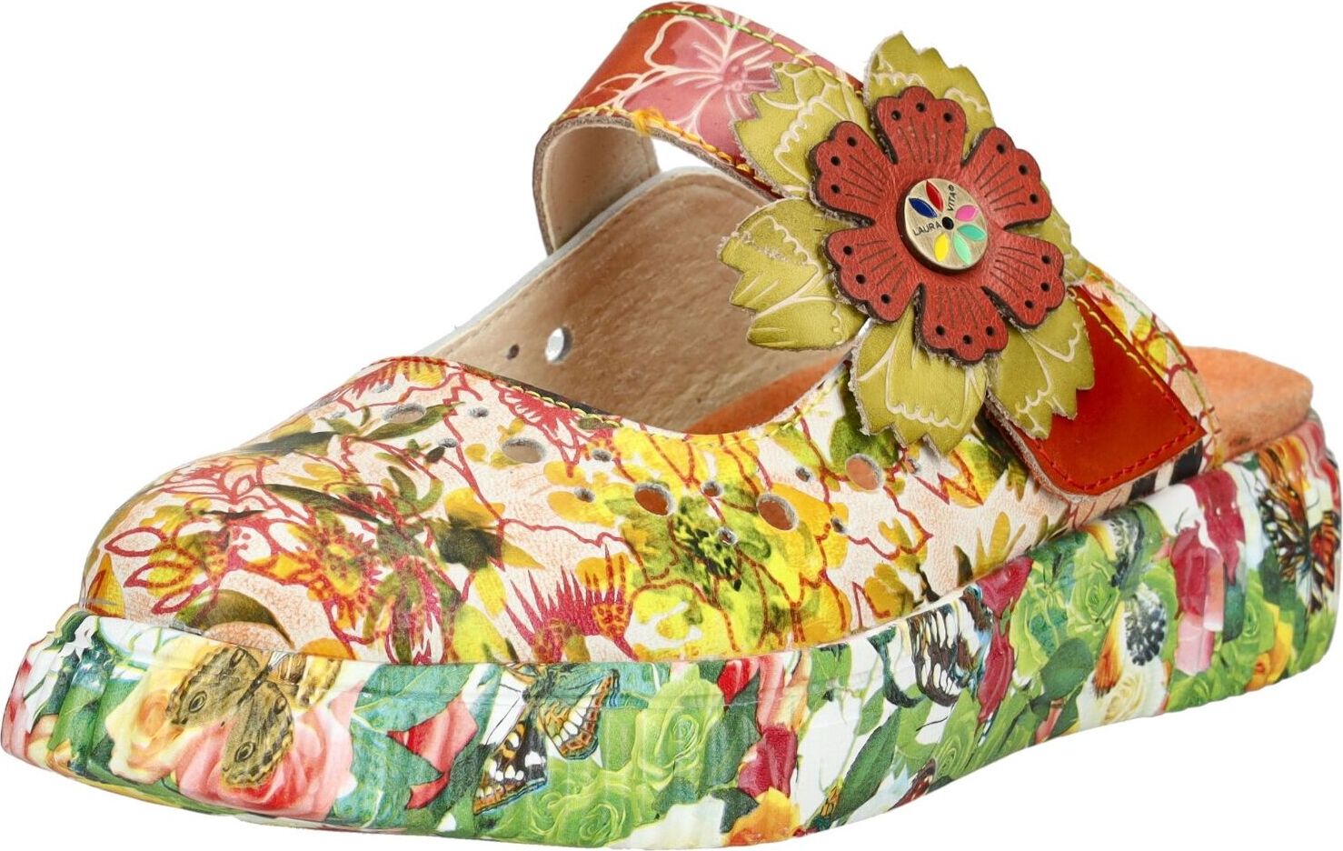 Entdecken Sie die perfekte Kombination aus Stil und Komfort mit den Laura Vita Pantoletten aus hochwertigem Leder in einem lebendigen Orangeton. Diese geschmackvolle Pantolette vereint modernes Design mit einer raffinierten, blumigen Optik, die jedem Outfit das gewisse Etwas verleiht. +