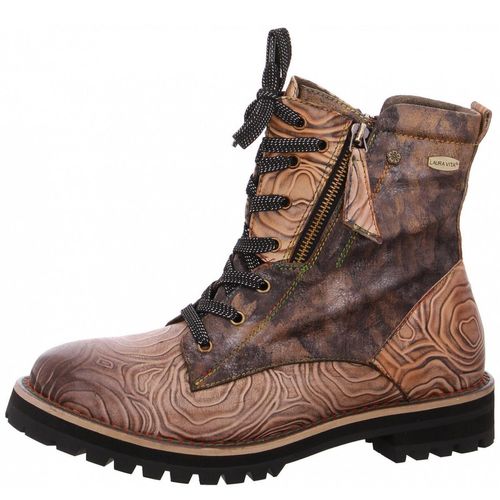 ieses Modell von Laura Vita besticht durch ein verspieltes Design und einen gelungenen Mix aus Leder und Textil, was es zu einem optischen Hingucker macht. +