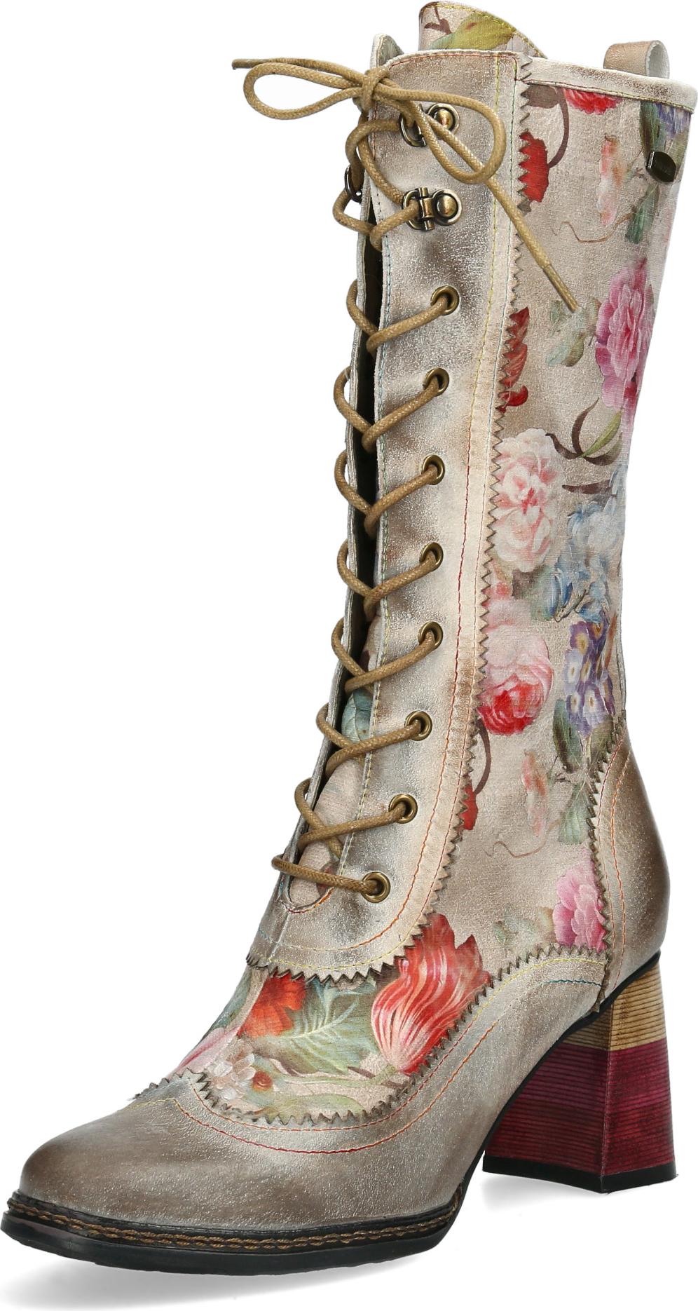 Der Stiefel zeigt sich in einem wundervollen Look mit floralem Muster und bunten Nähten. Die weiche Decksohle sorgt für ein angenehmes Tragegefühl.
