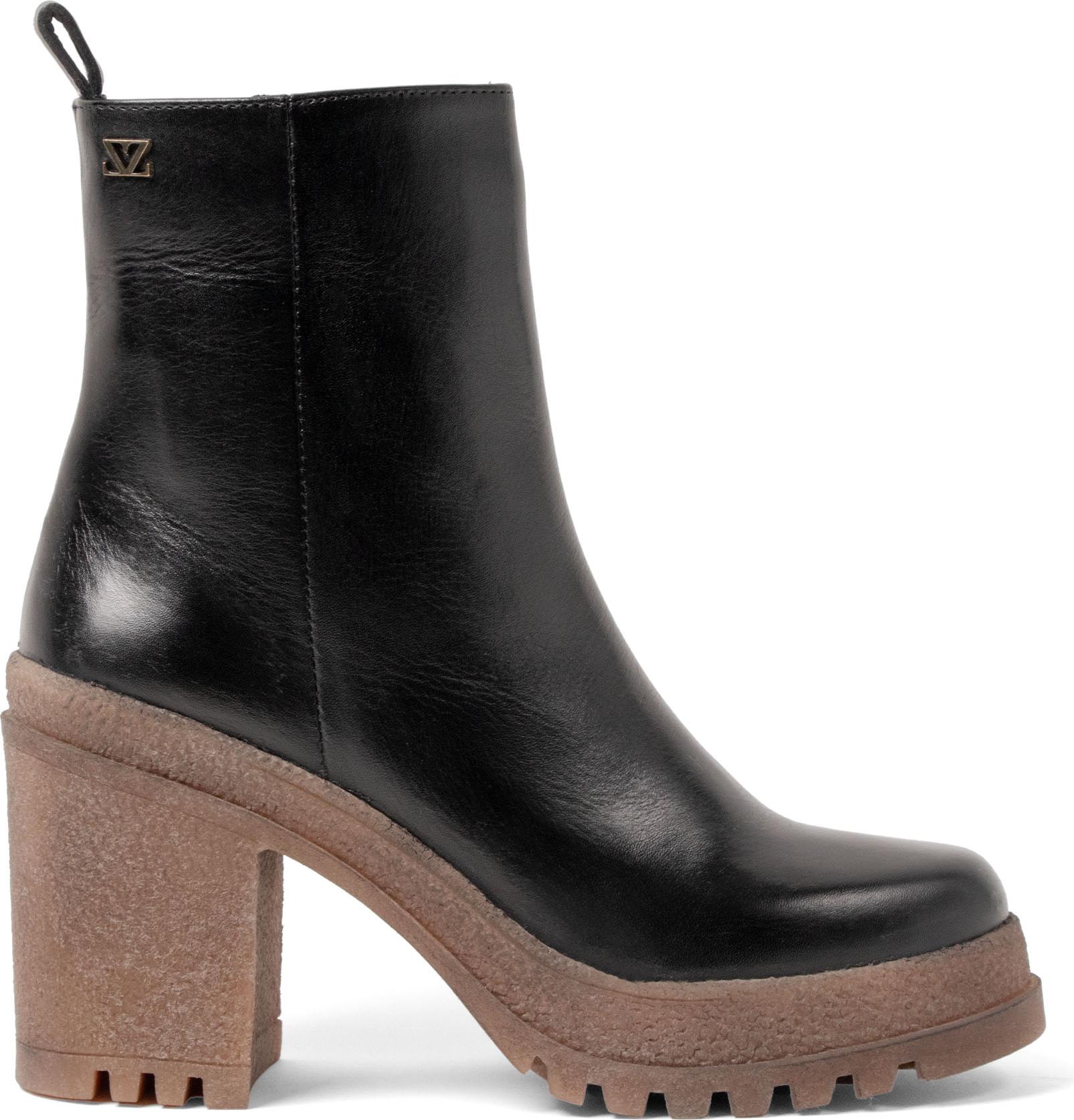 Das Obermaterial aus schwarzem Glattleder zeigt sich als langlebiges Echtleder, das jedem Outfit eine edle Note verleiht. Der 9,5 cm Blockabsatz sorgt für eine gestreckte Linie, die rutschfeste Profilsohle für Trittsicherheit.