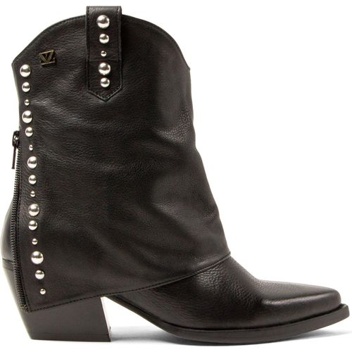 Mit YARA hält ein vielseitiger Begleiter Einzug in die Garderobe: Schwarzes, langlebiges Echtleder mit glatter Oberfläche, spitz zulaufende Front und ein umgeschlagener Schaft mit feinem Nietenbesatz prägen den Look. +