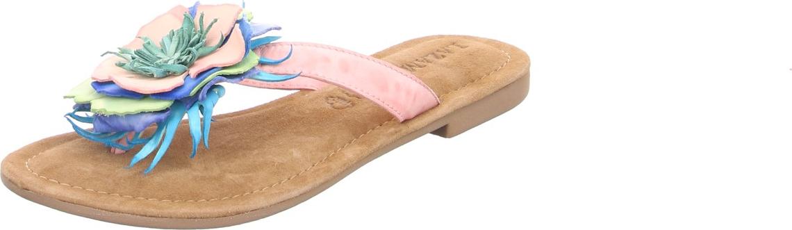 Zehentrenner aus echtem Leder mit pinkem Riemen und Blüten-Detail am Band. +
