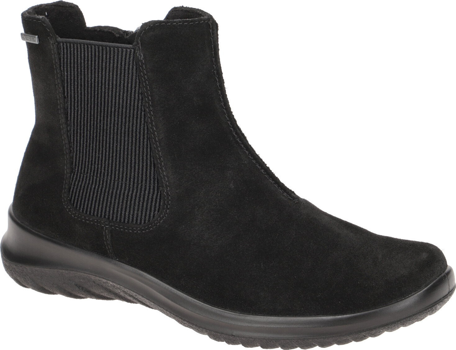 Marke: LegeroModell-Nr.: 2-009000-0000Modellname: SOFTBOOT 4.0Art: Damen Stiefeletten - bequeme StiefeletteFarbe: schwarz (schwarz)Obermaterial: Echtleder - Velour - Rauhleder (GORE-TEX =, wasserdicht)Innenfutter: Textil - weich gepolstert, FleecefutterInnensohle: Textil FußbettWechselfußbett: herausnehmbare InnensohleLaufsohle: Polyurethan (PU) - extra leicht und flexibelVerschluss: ReißverschlußAbsatz: flach - kein AbsatzAbsatzhöhe: flachSchafthöhe: Knöchelhoch, ca. +