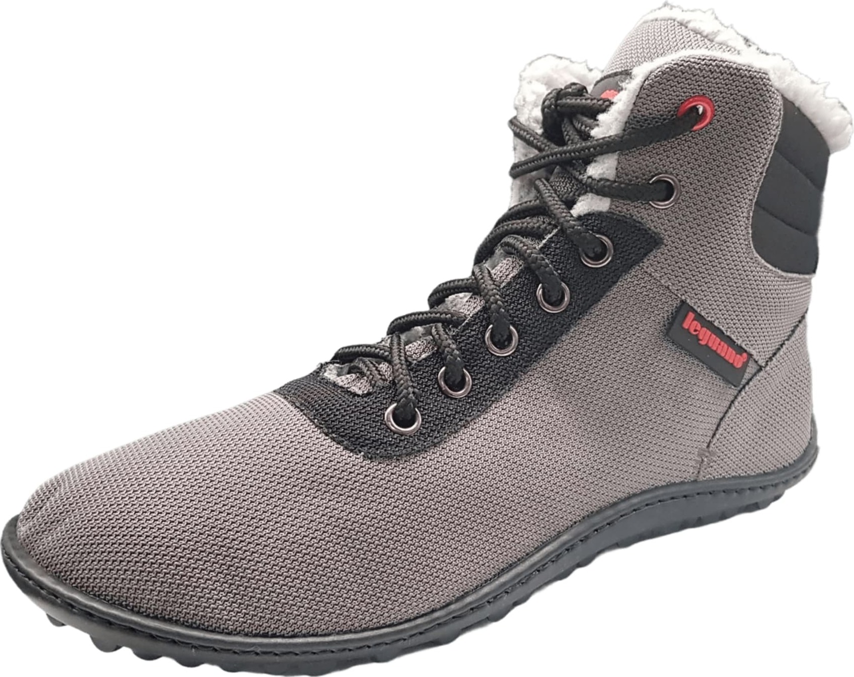 Leguano KOSMO Barfußschuh, Bequemschuh, Schnürboots mit einzigartiger Halbkugel-Laufsohle (grau)