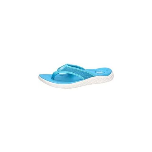Obermaterial aus Textil, Zehensteg und Schrägriemenbefestigung, Synthetikdecksohle. Rutschhemmende EVA-Laufsohle.