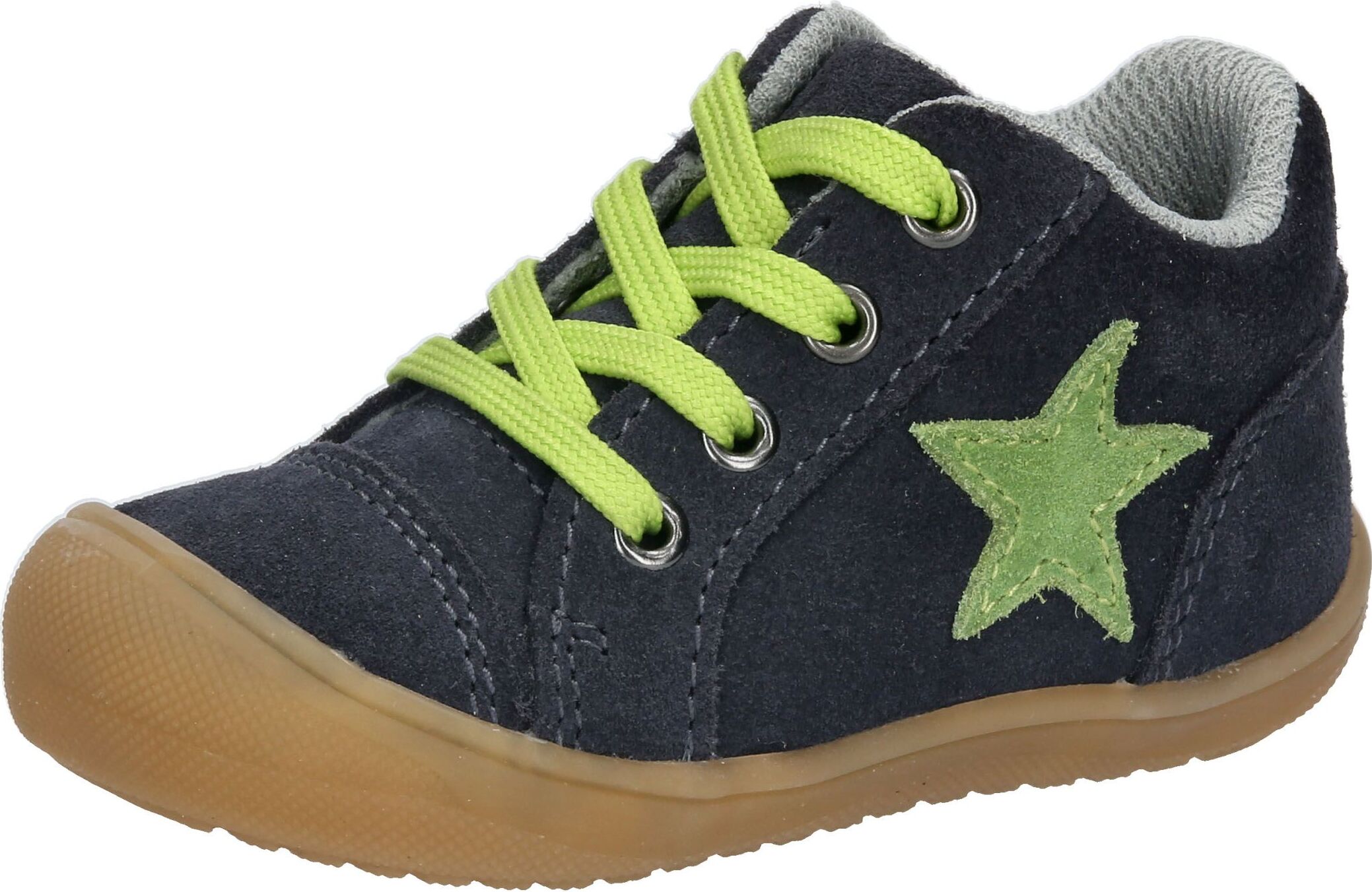 Gefertigt aus hochwertigem Veloursleder, bietet er optimalen Halt und ein angenehmes Tragegefühl. Die praktische Schnürung sorgt für eine individuelle Passform, während das weiche Textilfutter und die gepolsterte Textileinlegesohle die zarten Kinderfüße rundum verwöhnen.