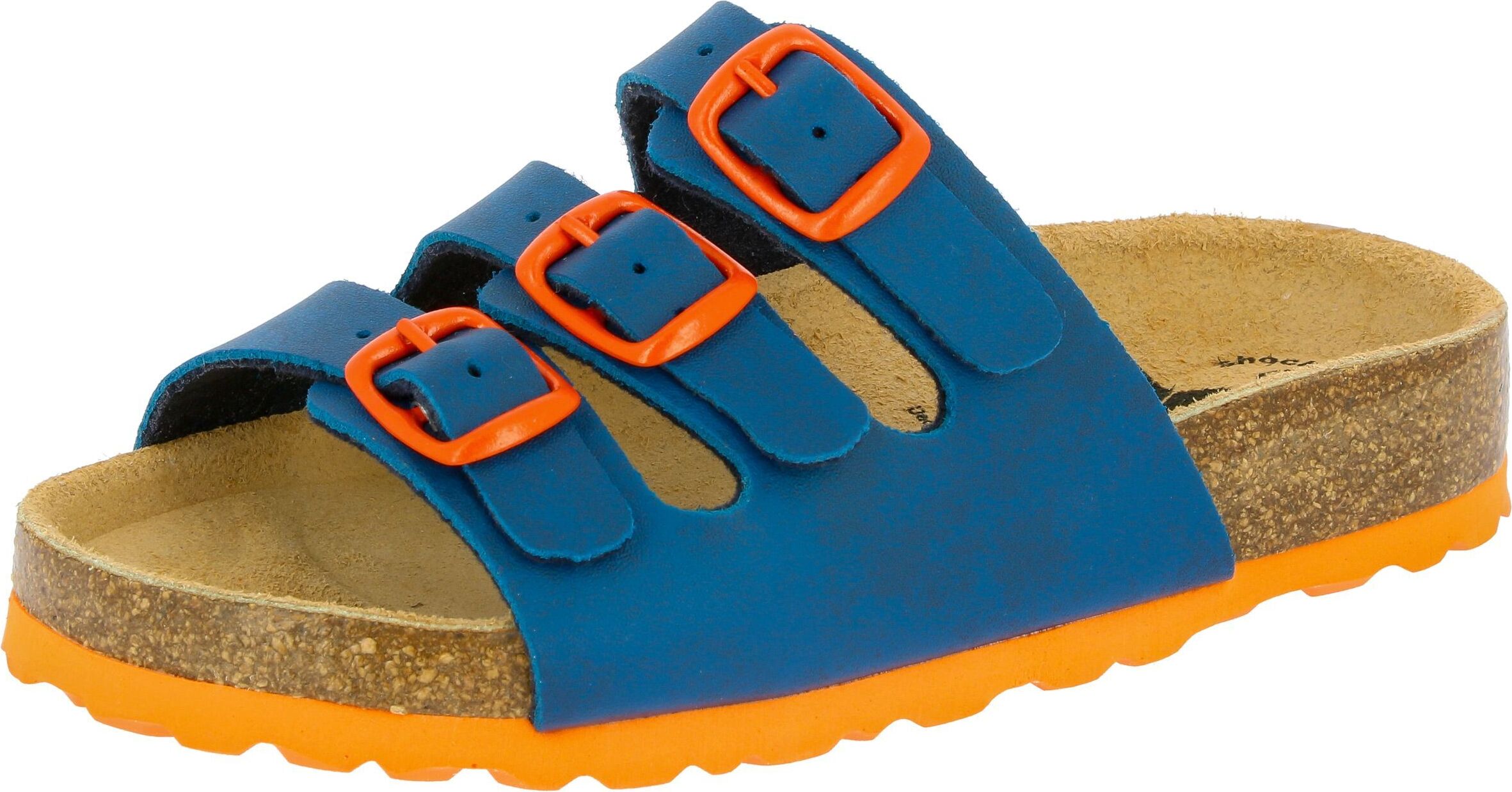 Die EVA-Laufsohle dämpft zusätzlich jeden Schritt und verleiht so ein sehr gutes Laufgefühl. Obermaterial: Synthetik Lederdecksohle Fußbett: Kork/Kautschuk dämpfungsaktive EVA-Laufsohle Passform: Pantolette fällt normal aus Verschlußart: verstellbare Schnallen Geschlecht: Mädchen Farbtöne: marine/orange
