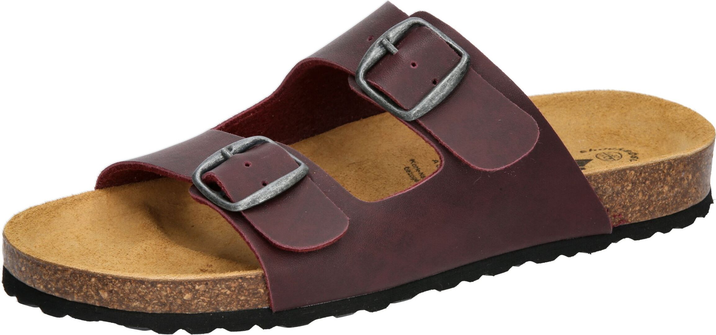 Pantolette für Kinder und Erwachsene aus Synthetik, verstellbare Schnallen, Lederdecksohle, dämpfungsaktive EVA-Laufsohle, Fußbett: Kork/Kautschuk