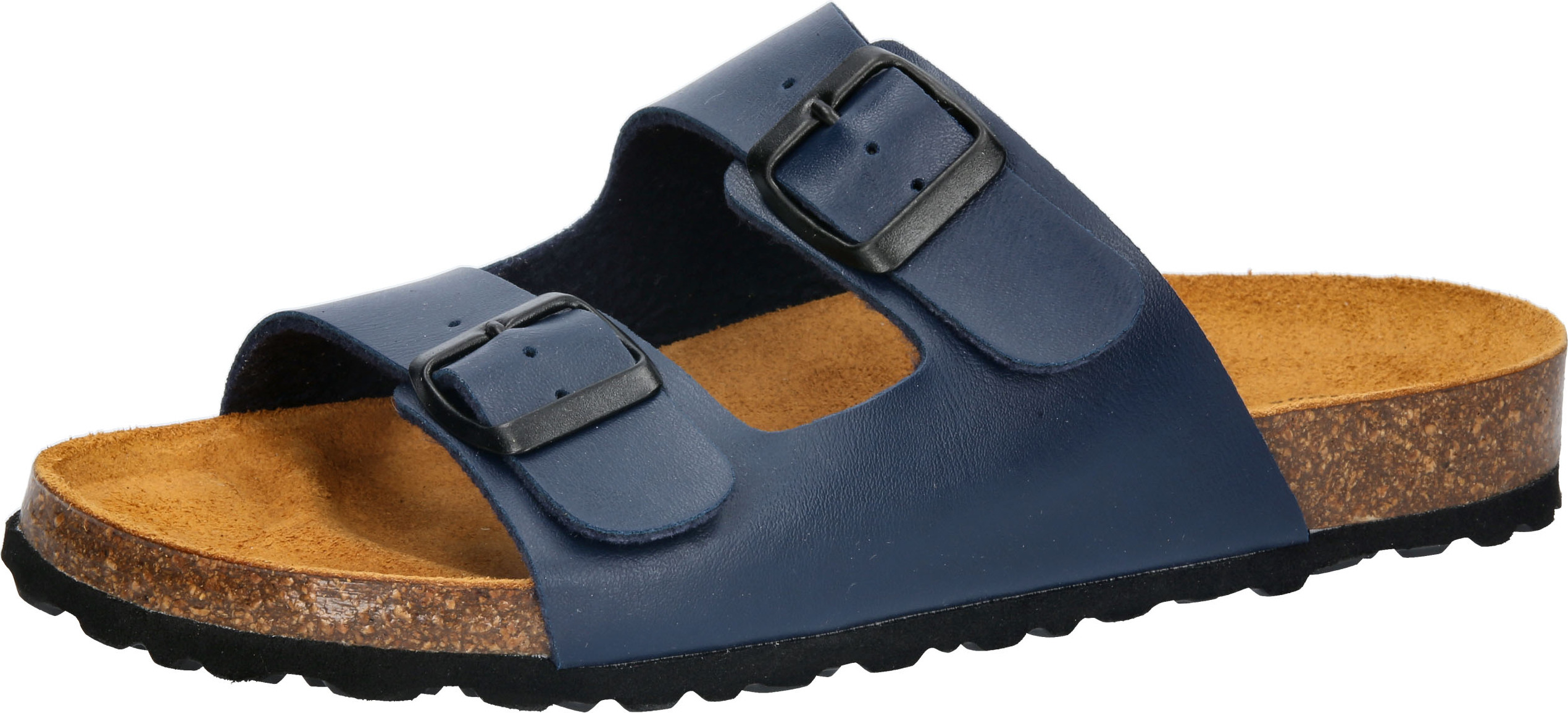Schicke Pantolette Bioline Platino in marine von Lico, Obermaterial aus hochwertigem Synthetik, zwei verstellbare Schnallen, angenehme Lederdecksohle, dämpfungsaktive EVA-Laufsohle, Fußbett aus einer Mischung von Kork und Kautschuk