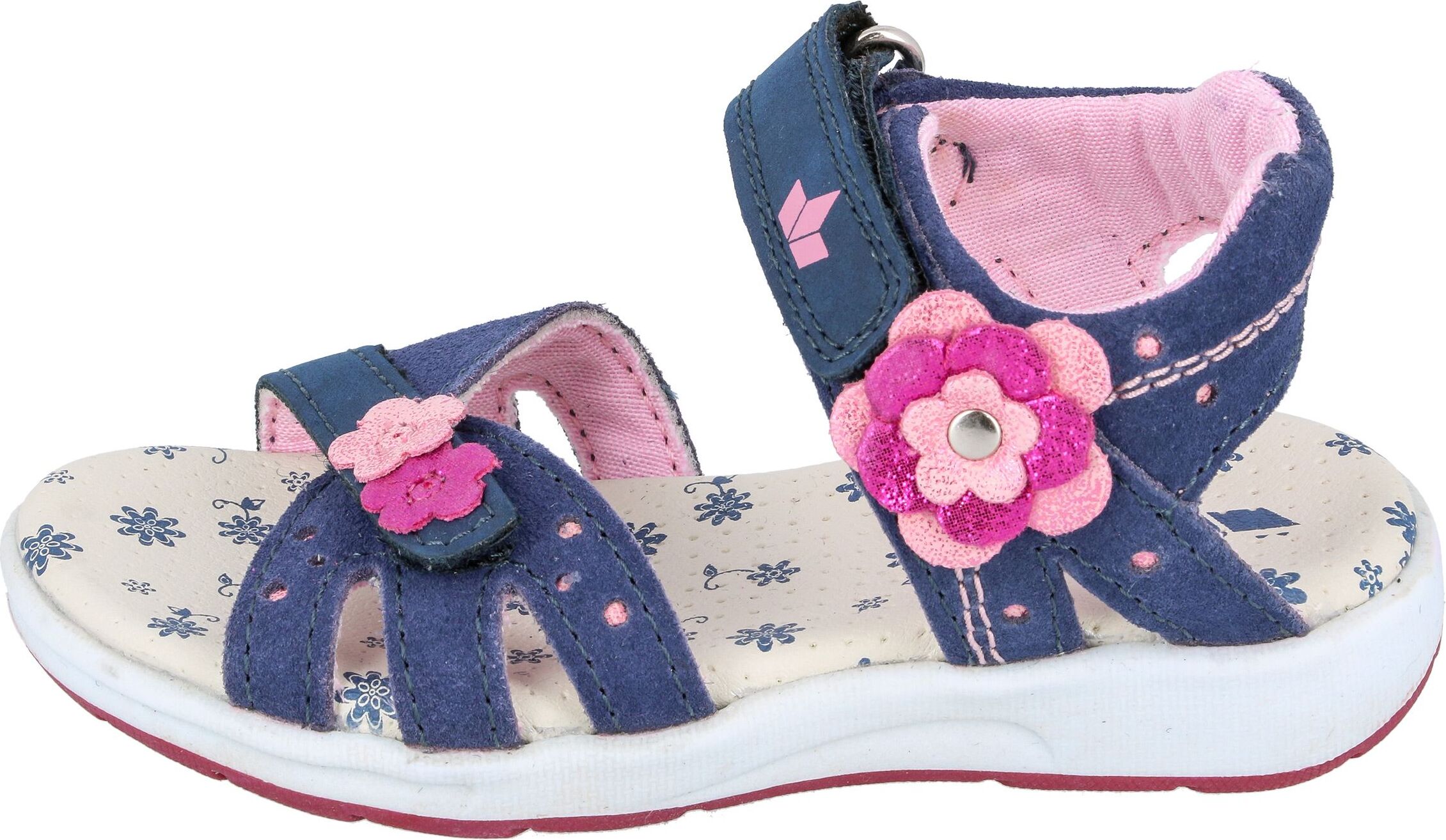 Sandale für Kinder aus Leder, zwei Klettverschlüße, Textilfutter, Decksohle aus Synthetik und rutschfeste Gummilaufsohle