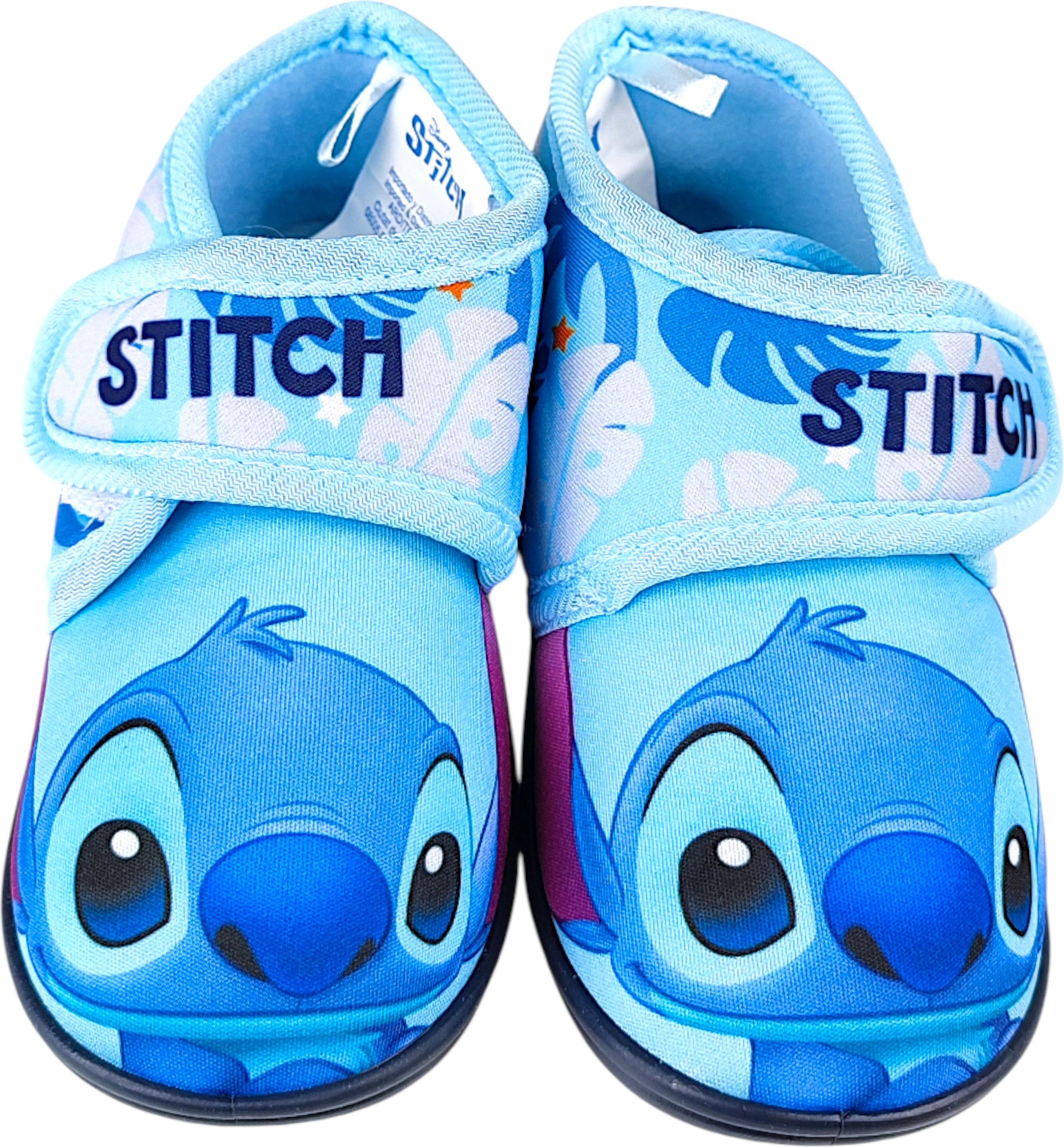 Stitch-Fans aufgepasst – hier kommt der fröhliche Begleiter für kleine Füße!Das verspielte Design mit dem beliebten Alien sorgt für gute Laune bei jedem Schritt.Ein praktischer Klettverschluss erleichtert das An- und Ausziehen und hält die Hausschuhe sicher am Fuß.Die flexible, rutschhemmende Sohle bietet Halt beim Spielen und Laufen – perfekt für Zuhause und den Kindergarten. Obermaterial: 100 % PolyesterSohle: TPR Pflegehinweise: Handwäsche mit kaltem Wasser