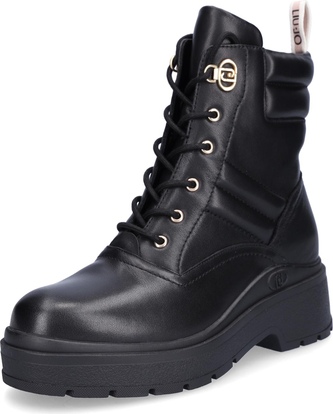 Liu Jo Damen Boot Andrea 02 aus schwarzem Glattleder mit Textilfutter, Leder-Innensohle, Schnürung und Reißverschluss