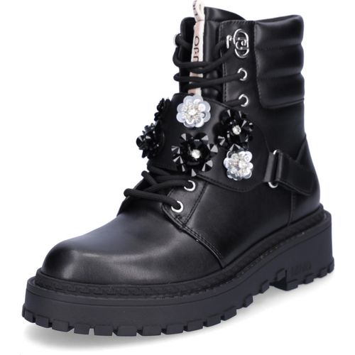Liu Jo Damen Boot Rumi 40 aus schwarzem Glattleder und Lederimitat mit Textilfutter, Leder-Innensohle, Schnürung und verzierter Lasche